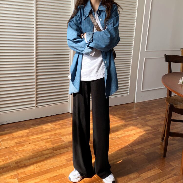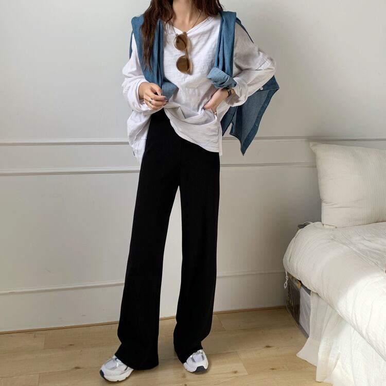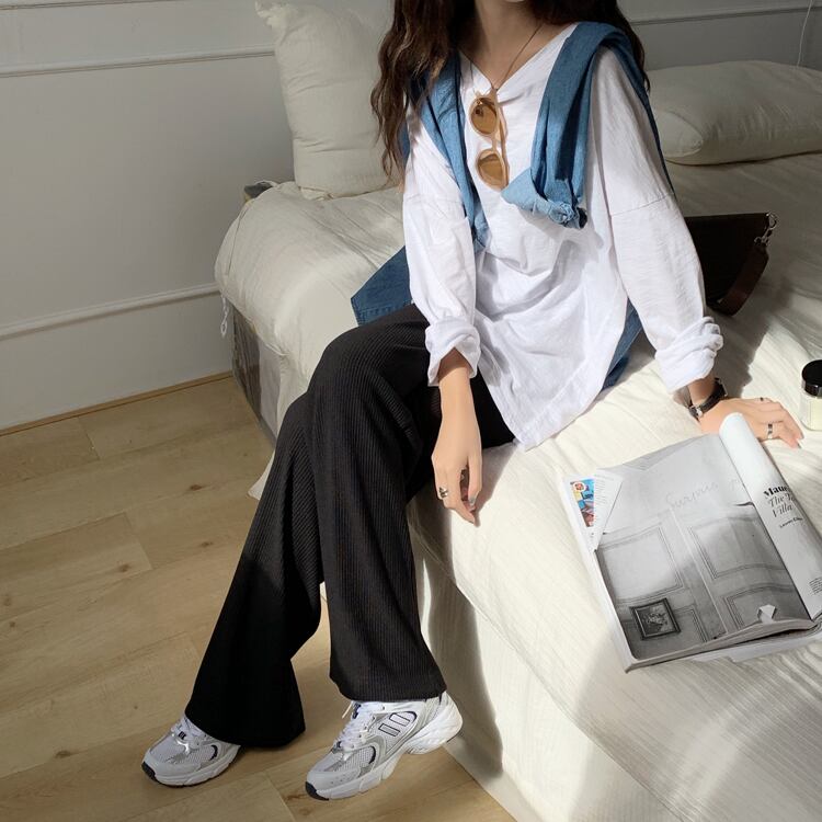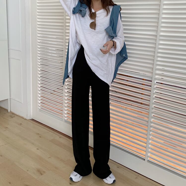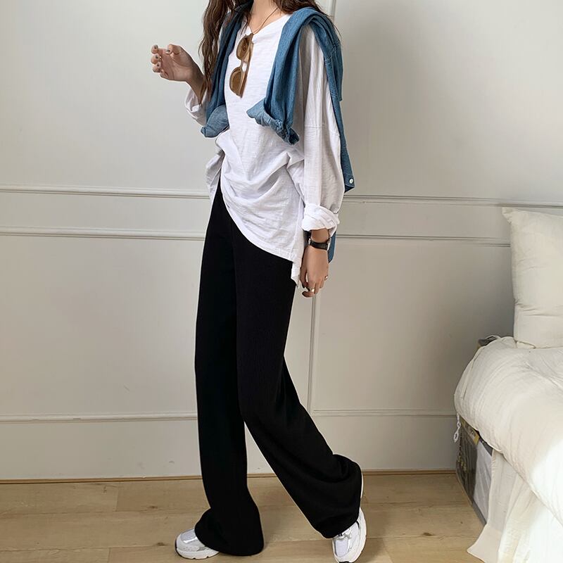 2020年初秋新作ルーズカジュアルパンツ女子学生オールマッチ細ワイドレッグパンツハイウエストドレープモップパンツ クレセントシティ11019283550