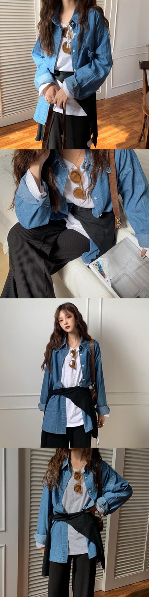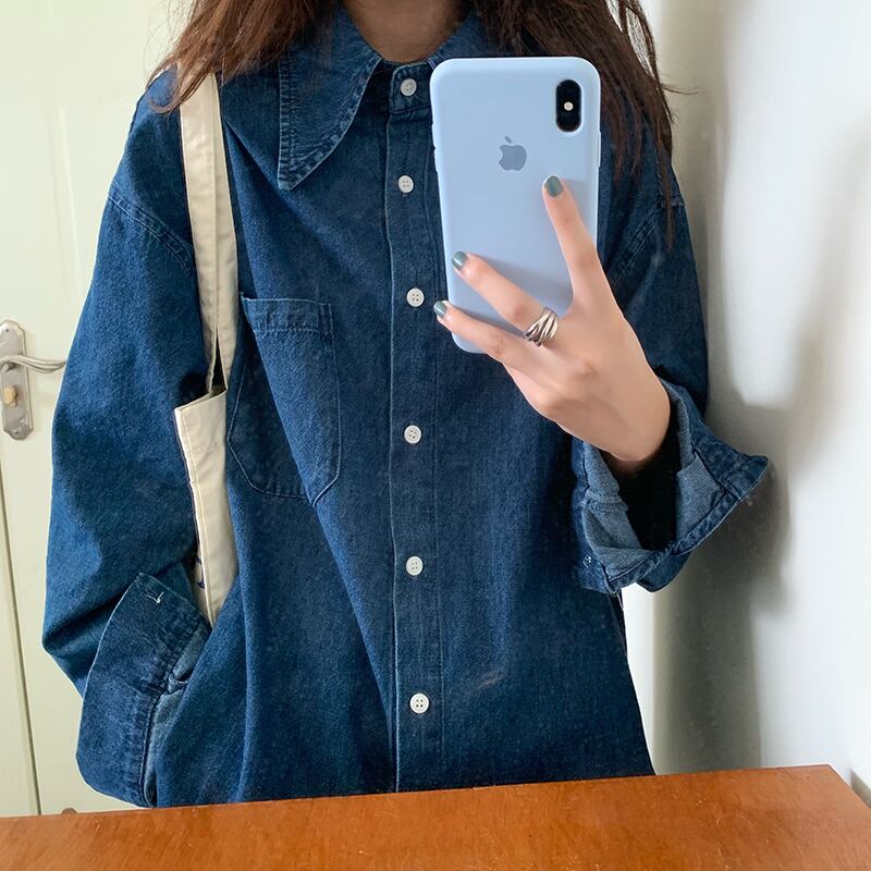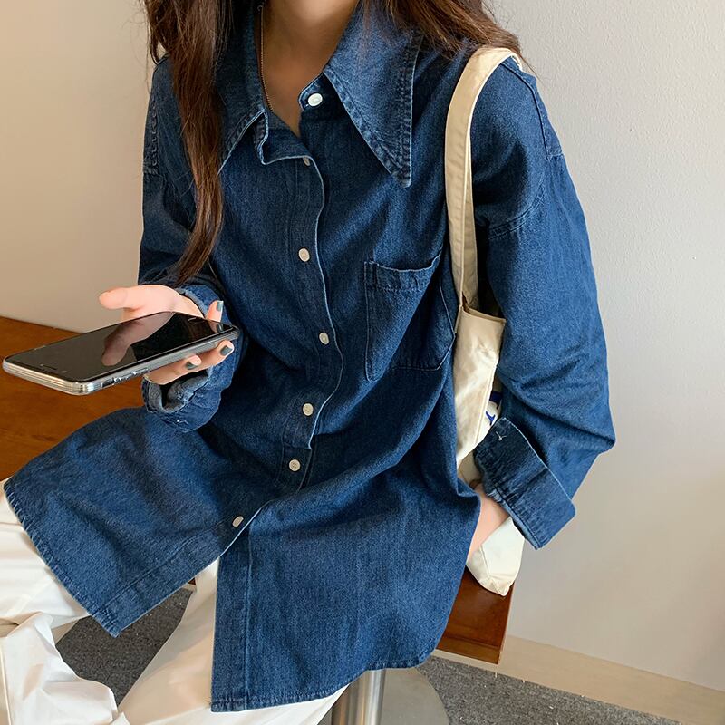 長袖デニムシャツ女性の秋のPOLO襟2020新しいバージョンの緩い、薄い学生の薄いすべてのマッチブラウス クレセントシティ66463490220