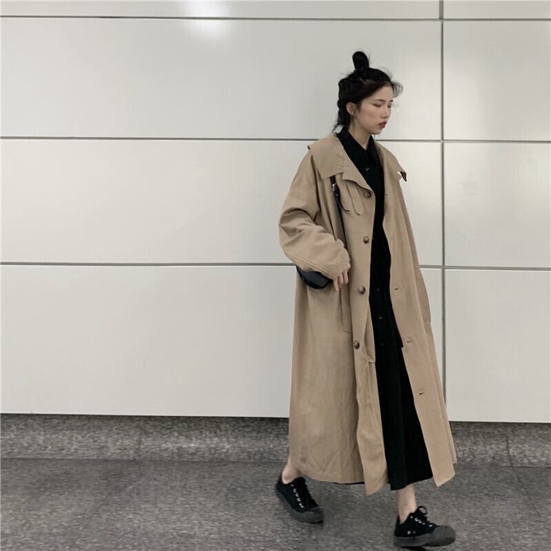 カーキウインドブレーカーレディース2020年初秋ミドル丈ルーズコートジャケットトレンドのラージラペルデザインセンスの新バージョン クレセントシティ37706646281