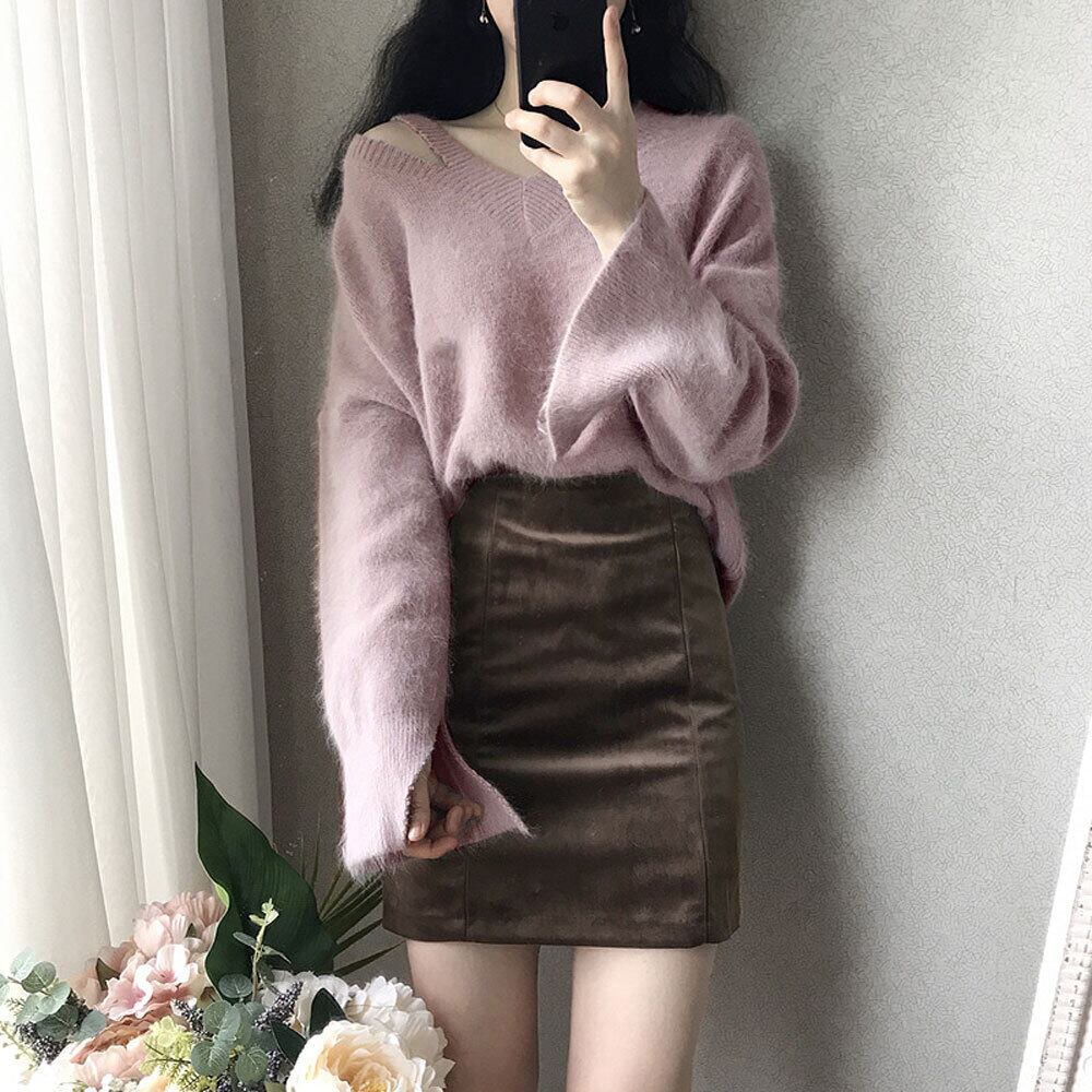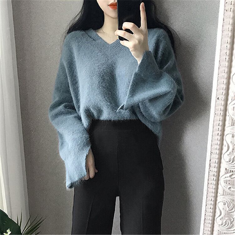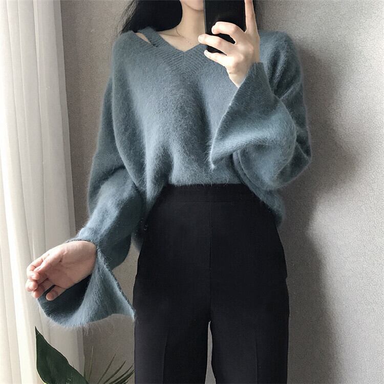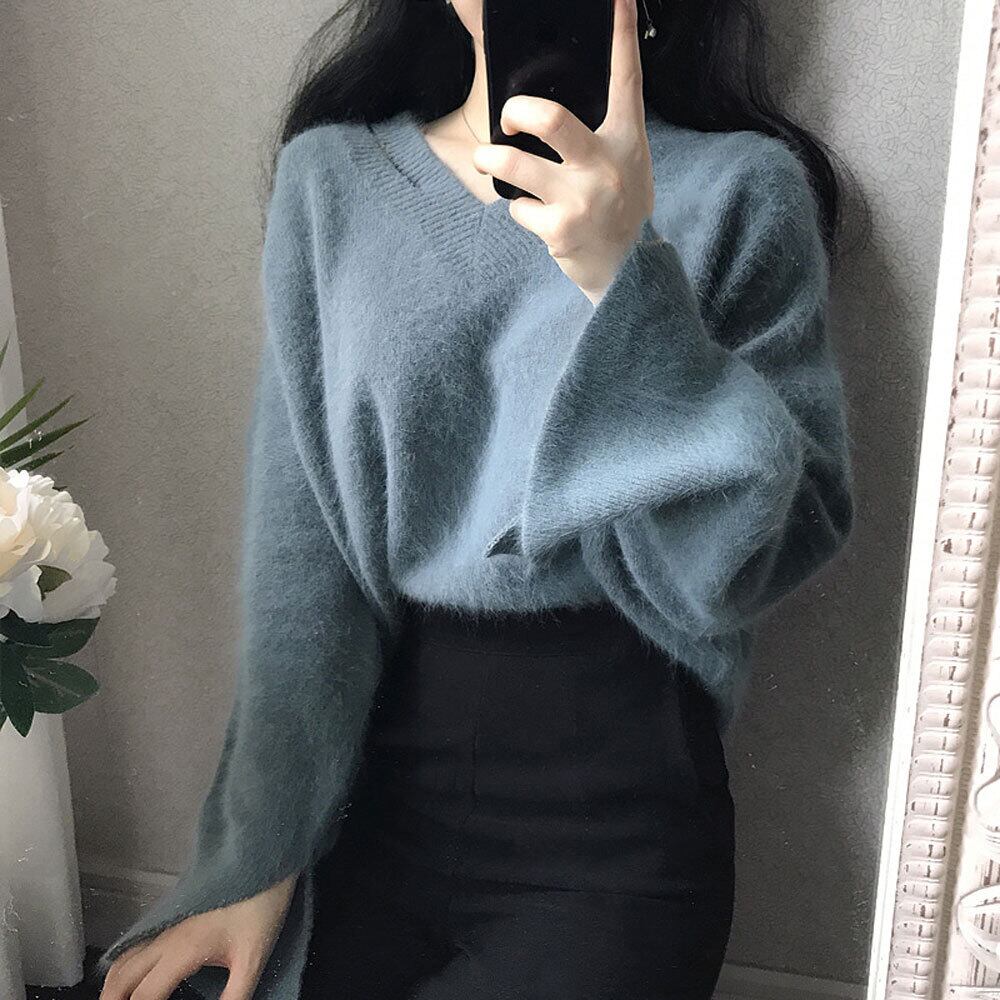 シックなウサギカシミヤvネックセーターレディースバージョン2020年初秋の新しいデザイン感覚の緩い、薄い薄いニットセーターins クレセントシティ44721517123