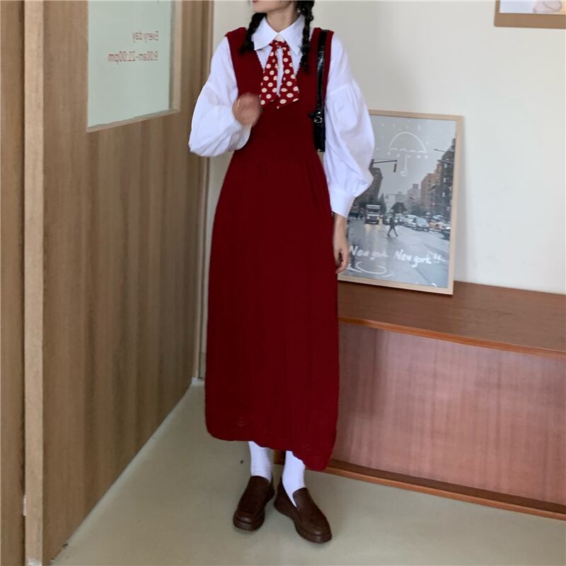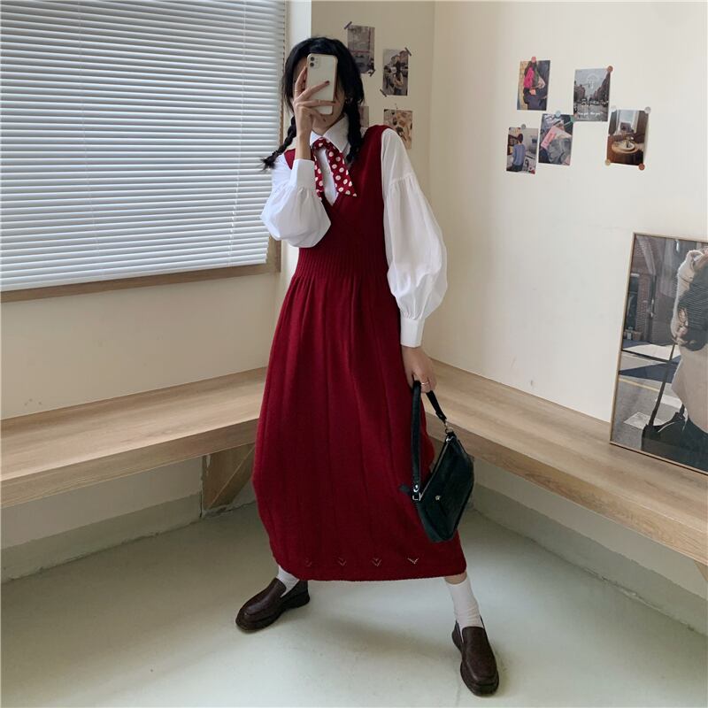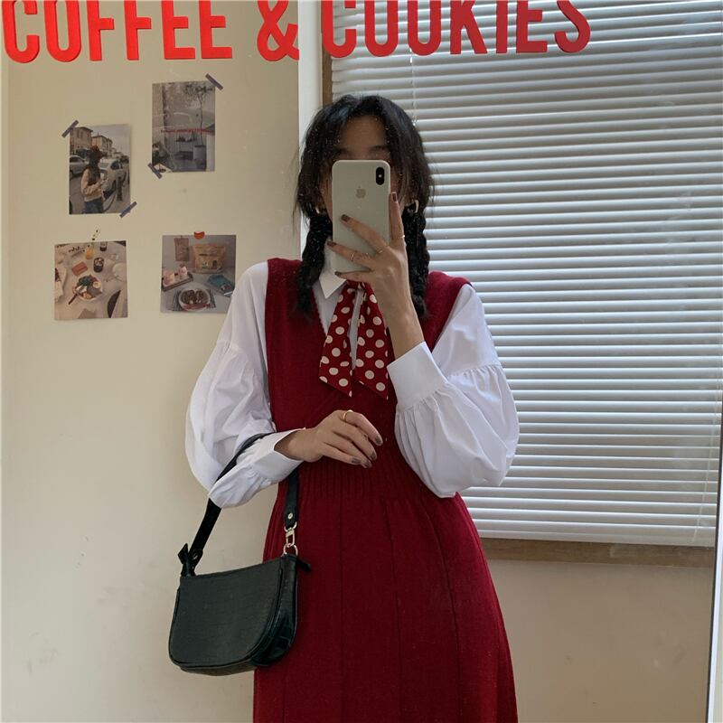 スーツ女性2020年初秋新バージョンの白いパフスリーブシャツ+赤い年齢を減らすニットドレス クレセントシティ32982730015