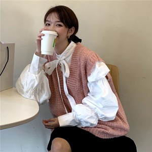 スーツの女性2020年秋新しいレースプリーツホワイトシャツ+ニットノースリーブベストジャケットツーピース クレセントシティ30504361681