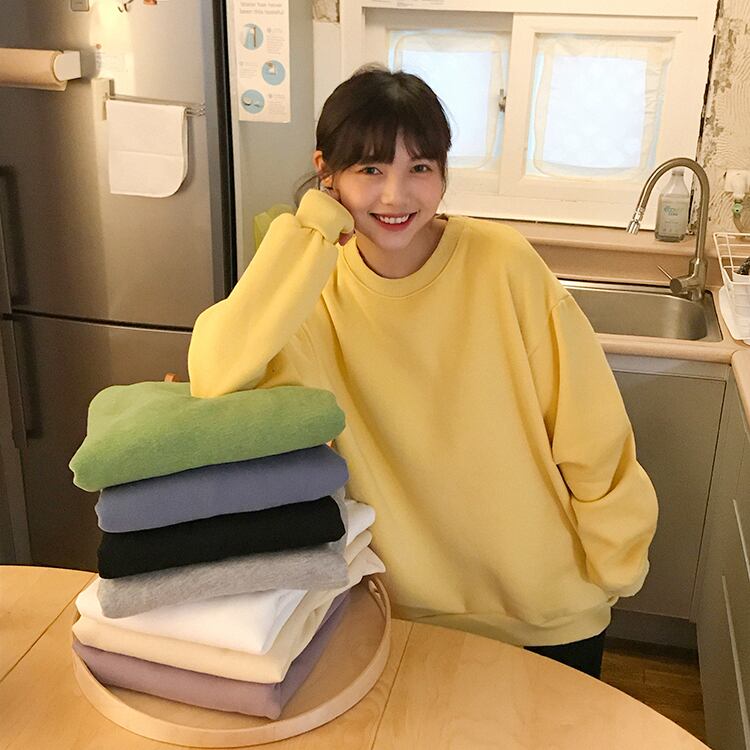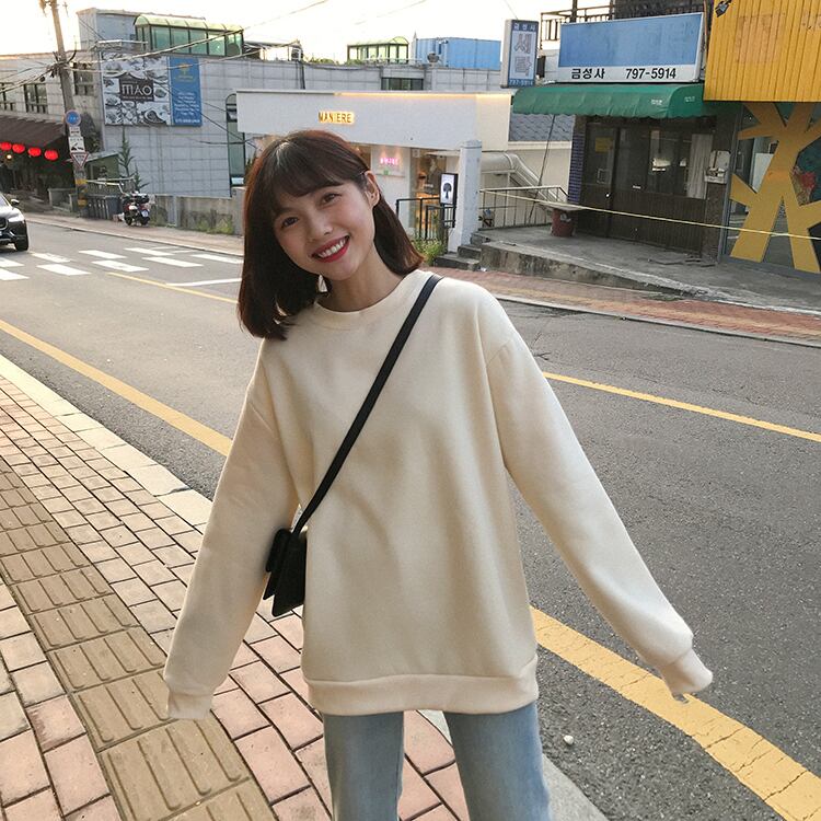 プラスベルベットパッド入りプルオーバーセーター女性2020年秋冬新バージョンルーズワイルドピュアカラーレイジーアウタージャケット クレセントシティ75038658779