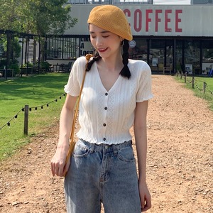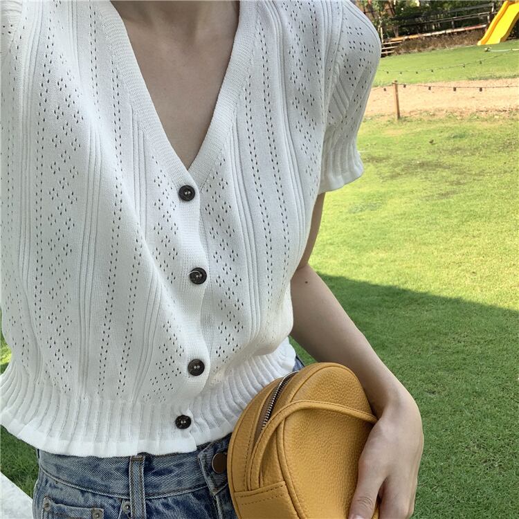 中空Vネックショートニットカーディガントップ女性インスーパーファイア2020新しい夏の日焼け止めシャツ半袖女性 クレセントシティ74273566765