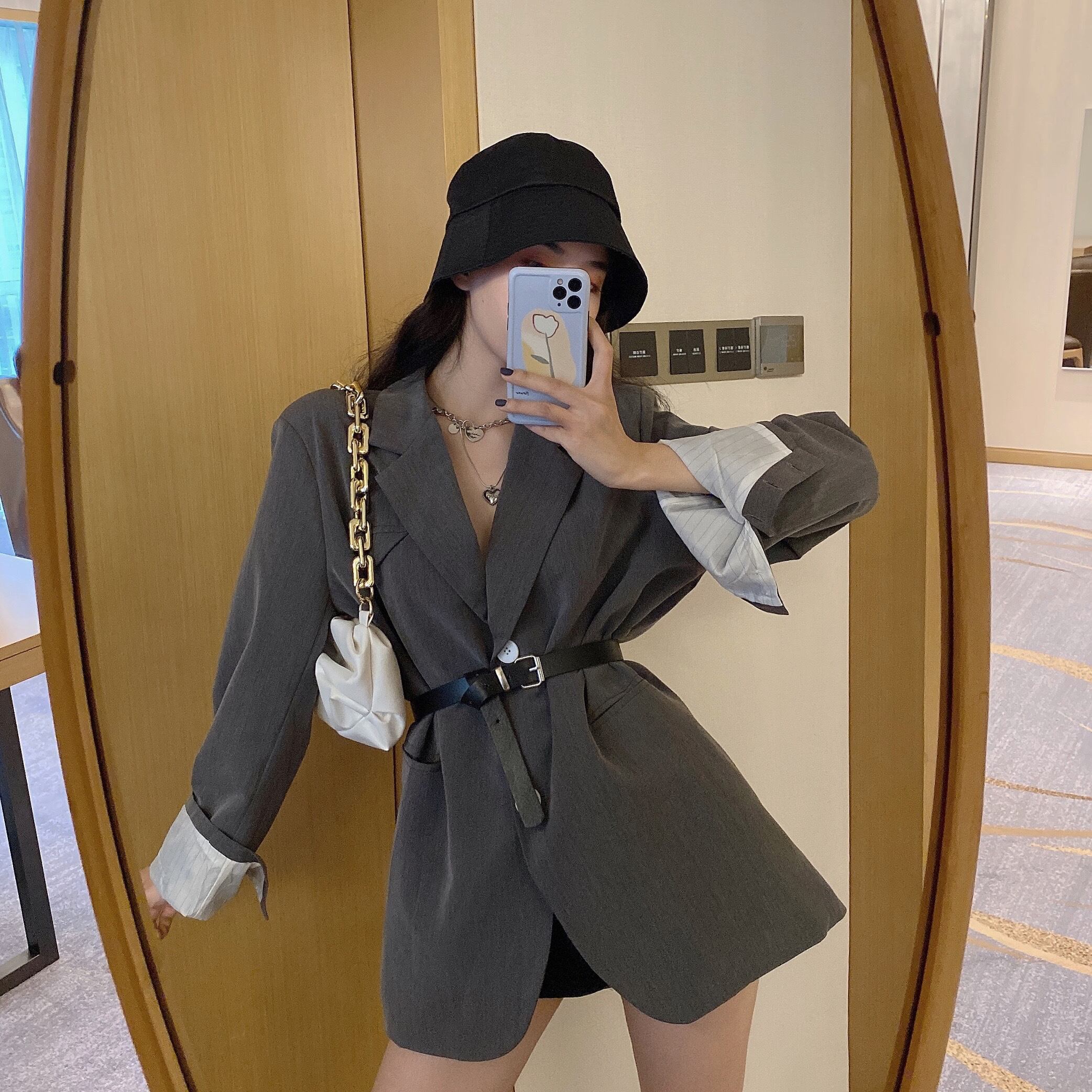 レディーススーツジャケットゆったりバージョン2020秋新しい英国風カジュアルミドル丈スモールスーツジャケット長袖 クレセントシティ10457087099