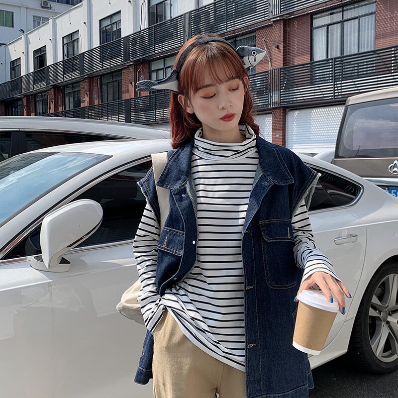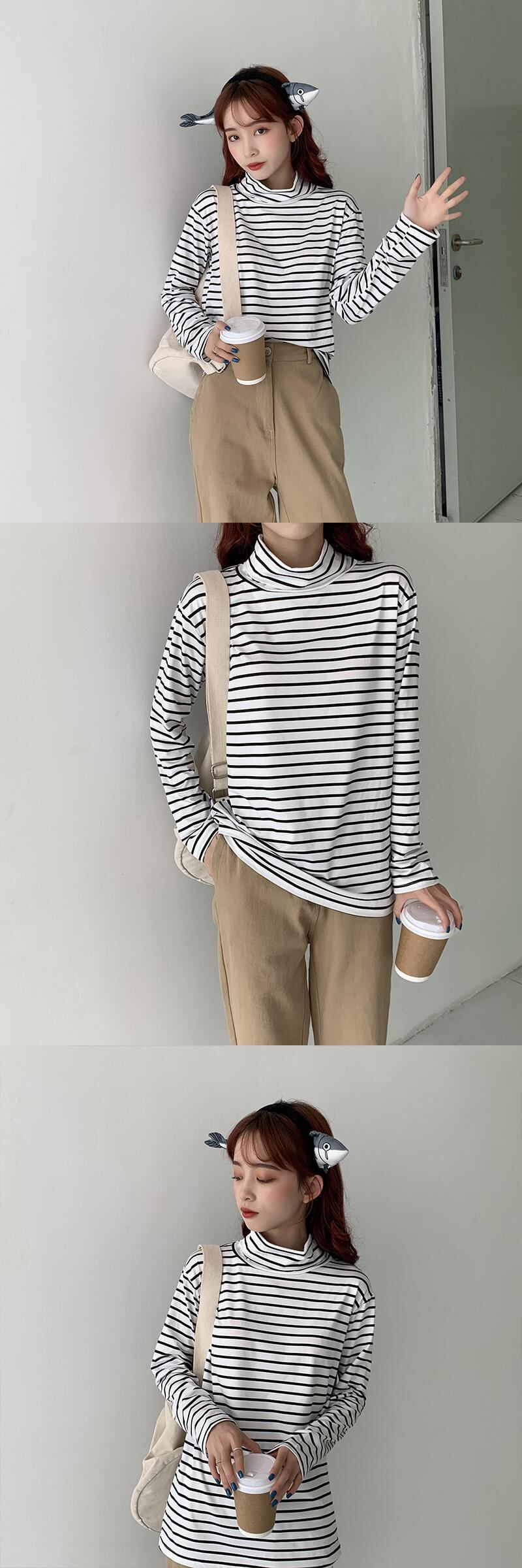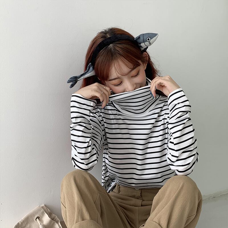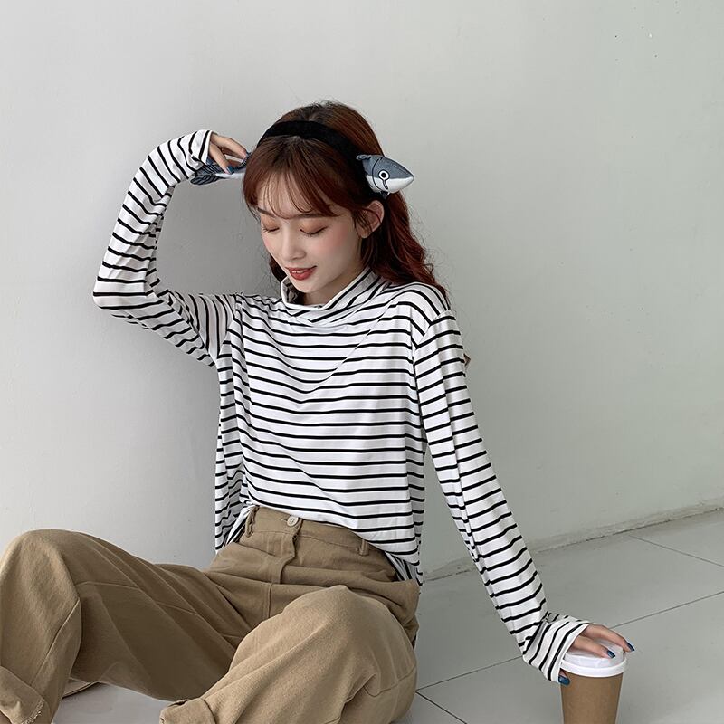 クレセントシティストライプ長袖Tシャツレディース2020年秋新バージョンルーズインナーハイカラーボトミングシャツトップイン クレセントシティ47977199538