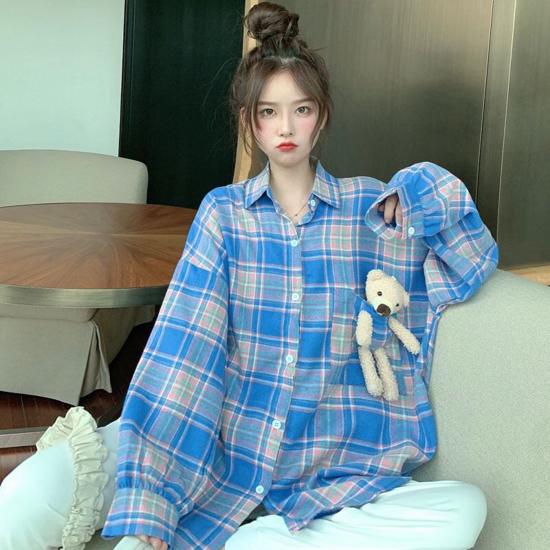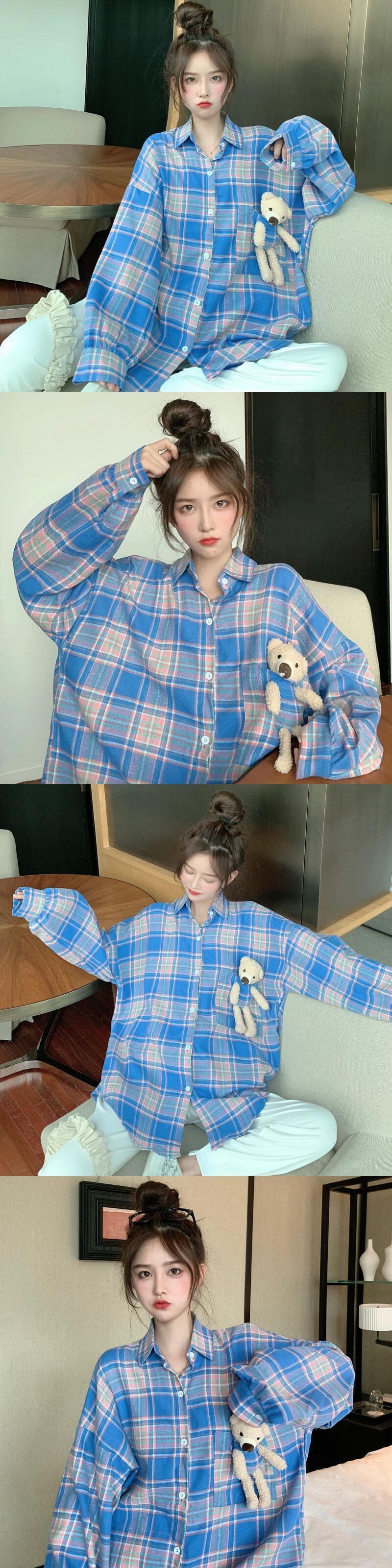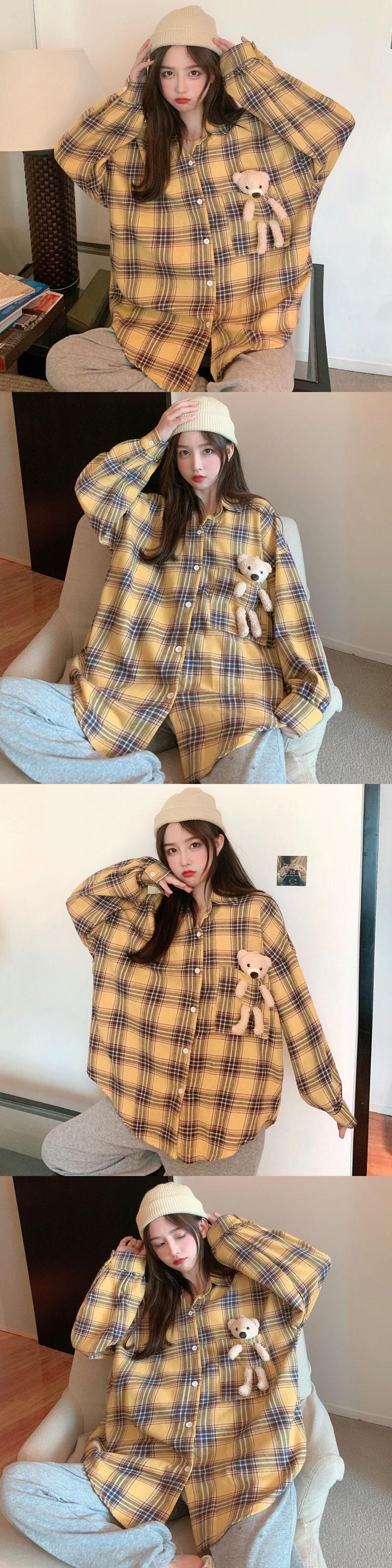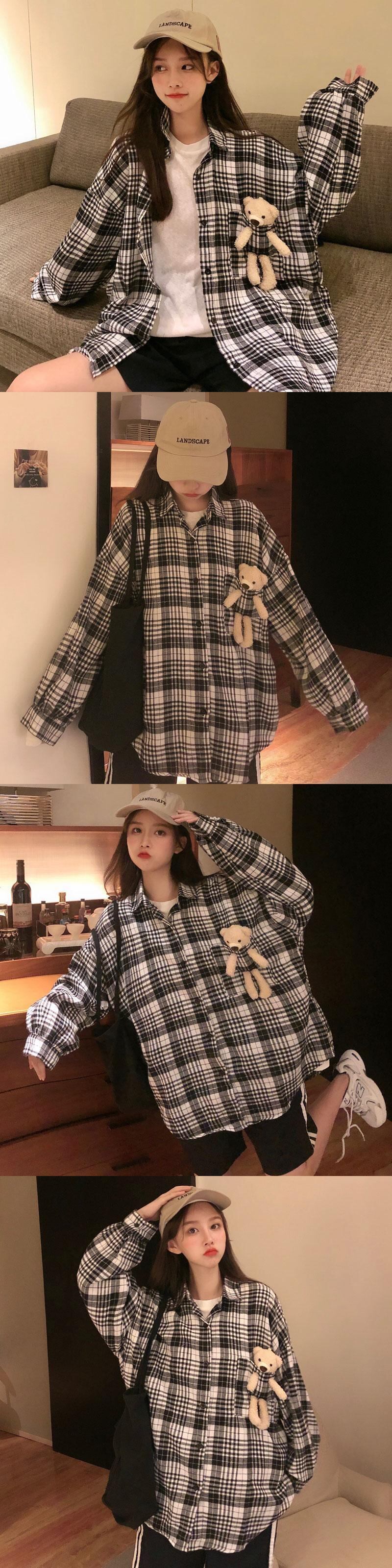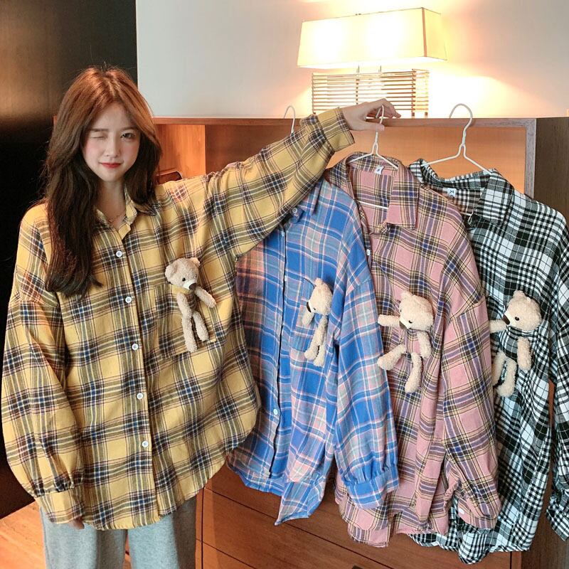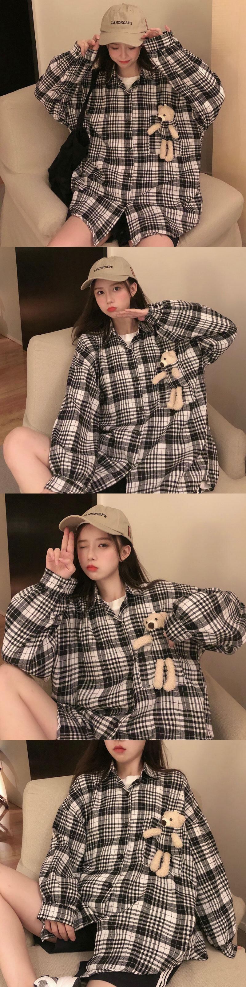 チェック柄シャツ女性デザインセンスニッチ2020年初秋新作立体クマソルト長袖チェック柄シャツ クレセントシティ56643570110