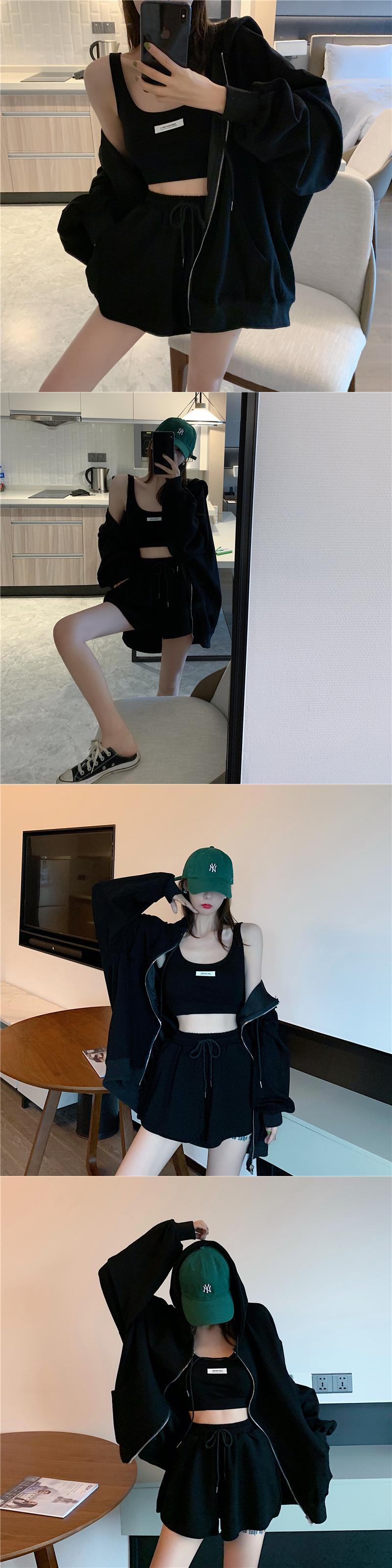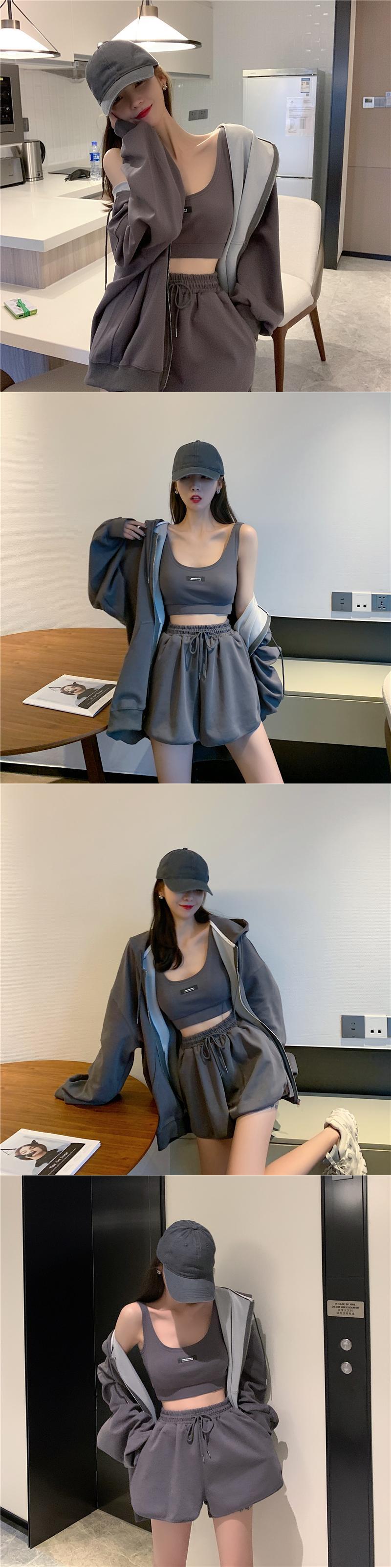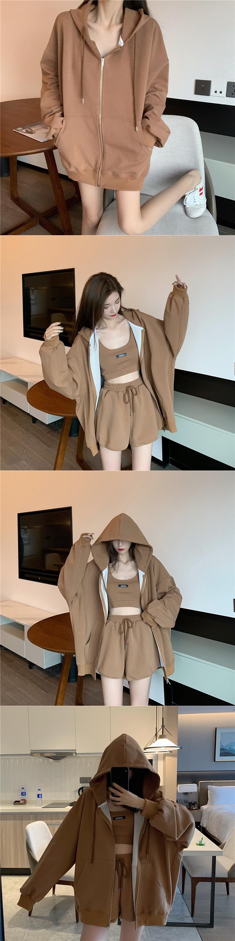 スーツの女性2020年秋新しいカジュアルスポーツショーツ+ルーズカーディガンフード付きジャケットトップ クレセントシティ63482217680