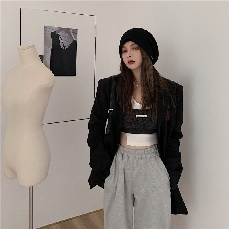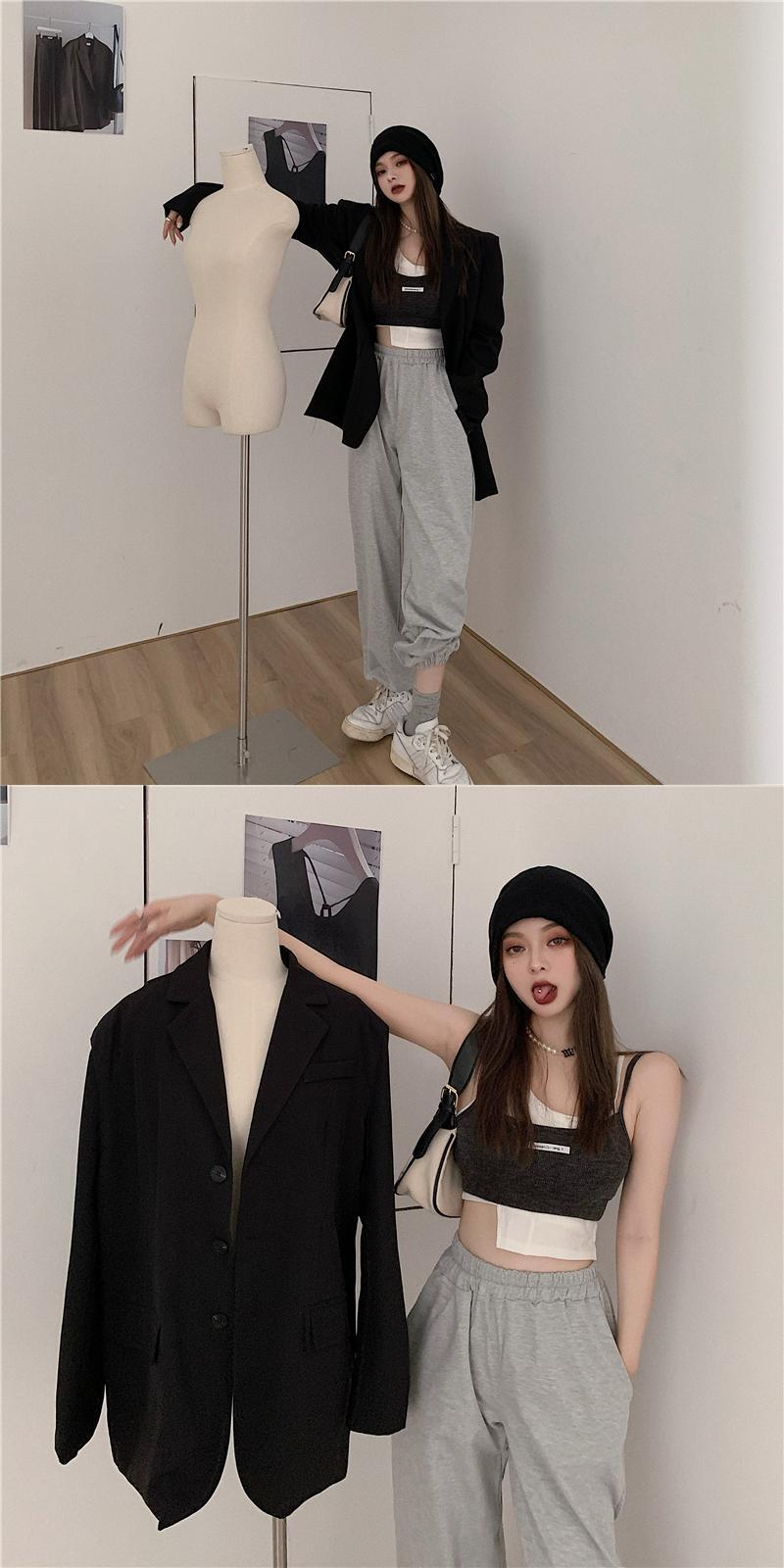 スーツ女性2020年秋新しいルーズブラックスーツジャケット+スポーツカジュアルワイドレッグパンツツーピーススーツ クレセントシティ58838660867
