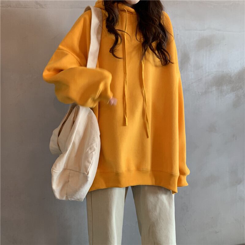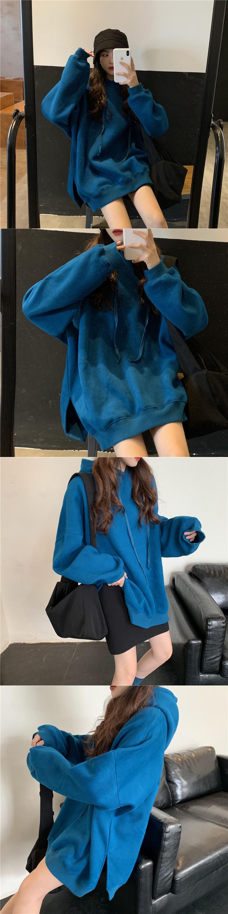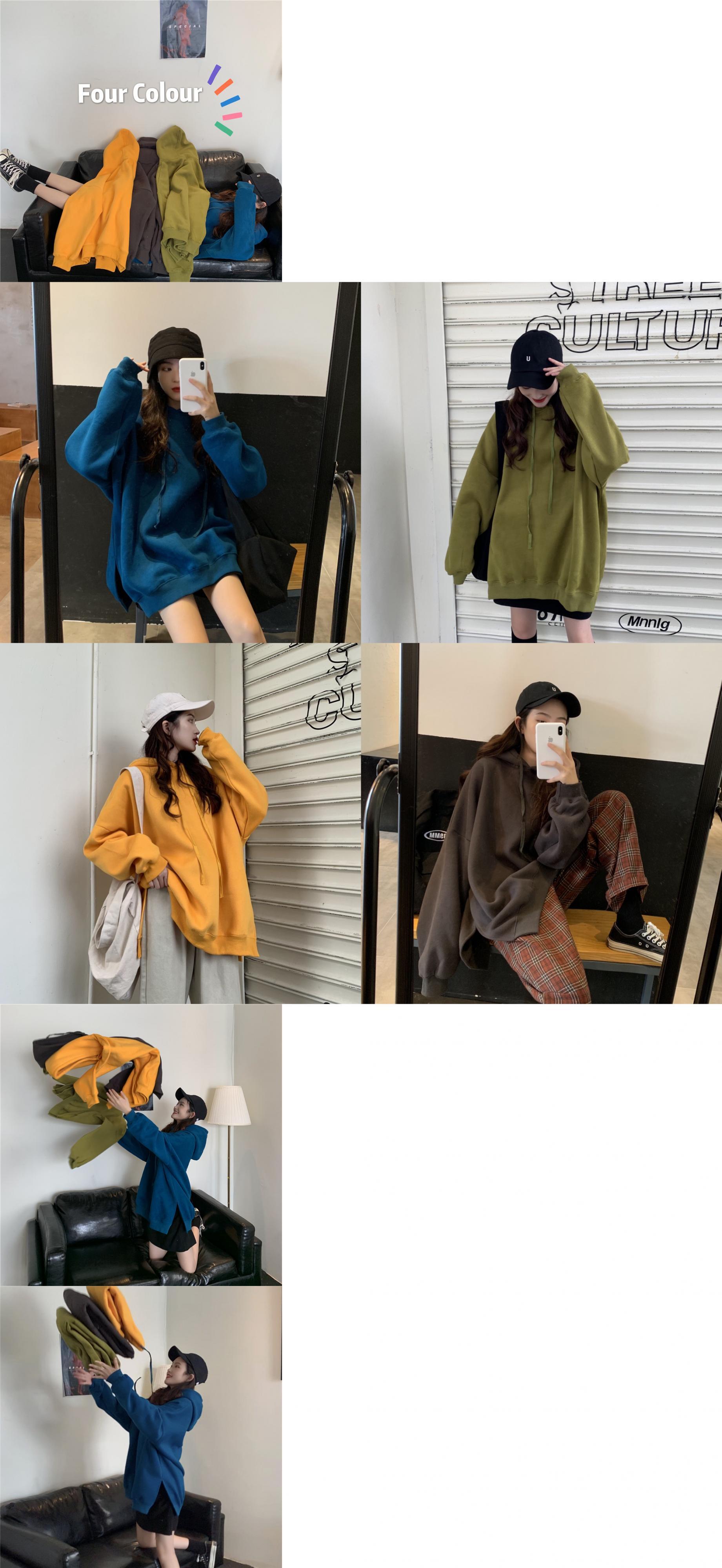 怠惰なスタイルのピュアカラー長袖プルオーバーセーター女性秋バージョンルーズで用途の広いスプリットミドル丈フード付きジャケットタイド クレセントシティ95629518976