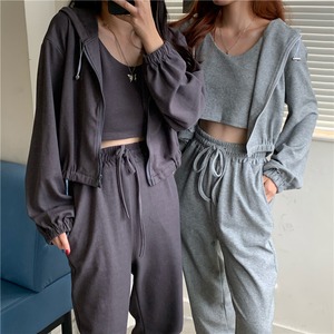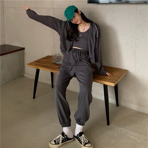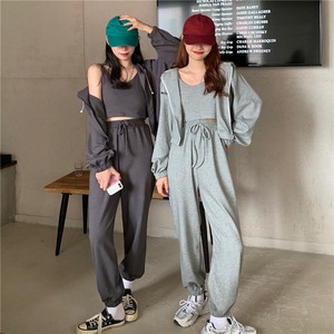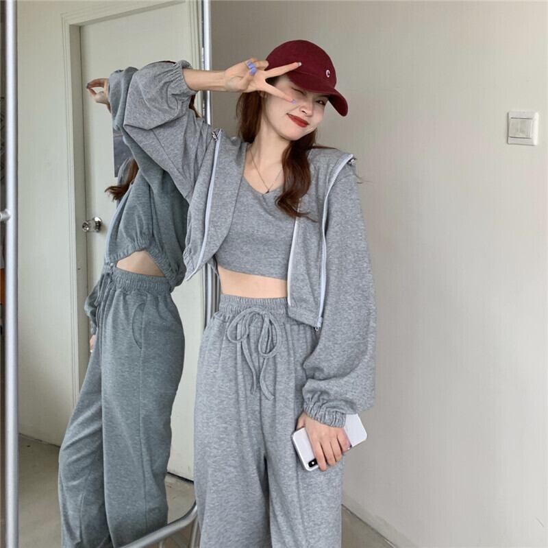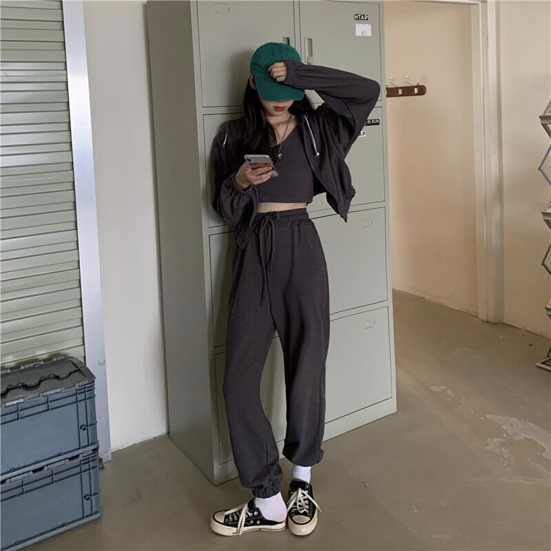 スーツ女性2020新しい緩いジッパーセータージャケット+ツーリングカジュアルスポーツパンツ+小さなキャミソール クレセントシティ43494454222