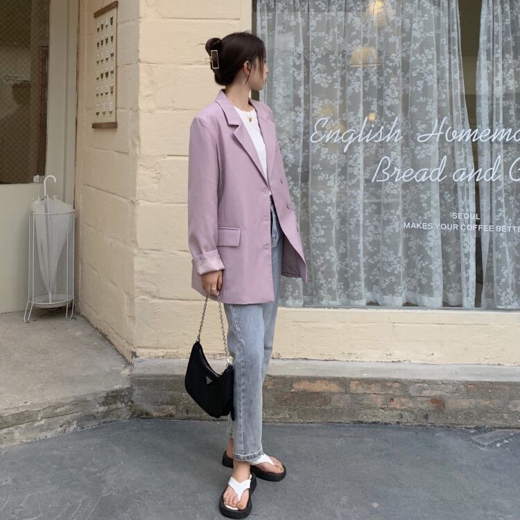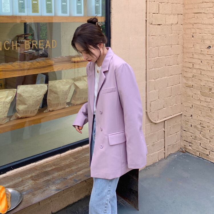 パープルスーツジャケットレディース2020年秋新バージョンルーズカジュアルオールマッチミドル丈スモールスーツジャケットトレンド クレセントシティ70782616073