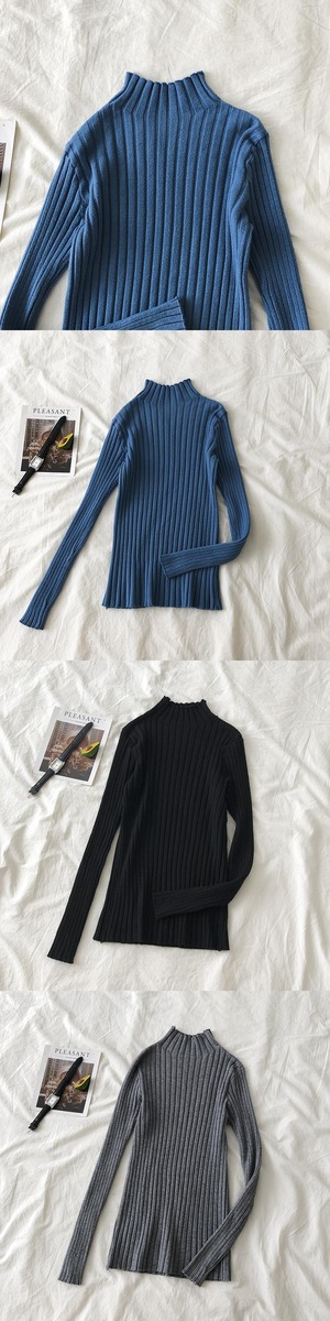 クレセントシティハーフタートルネックニットレディース2020年秋スリムウエスタンスタイル長袖ベースシャツトップス クレセントシティ7802964897