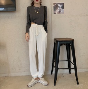 スポーツスーツの女性の2020年初秋のルーズショートラウンドネックTシャツ+弾性ウエストワイドレッグパンツトレンドの新しいバージョン クレセントシティ60546839414