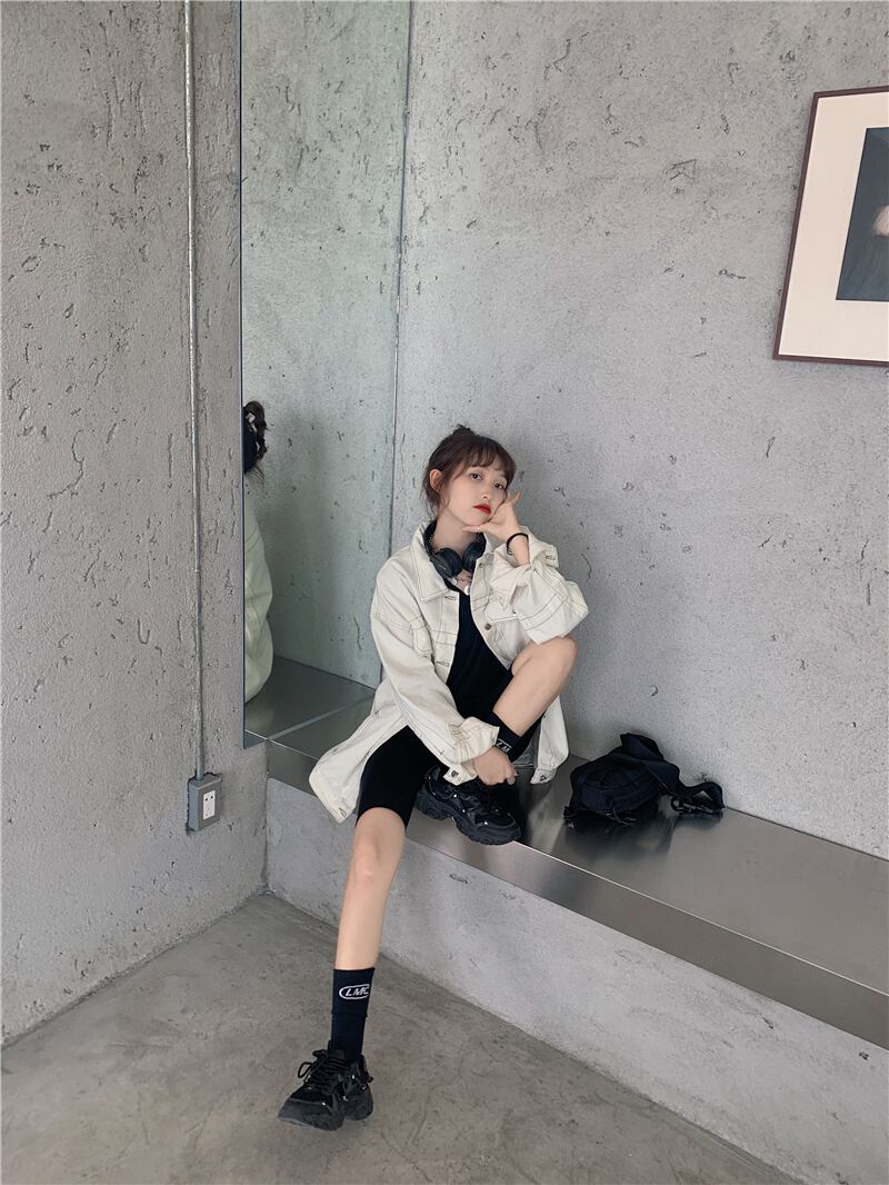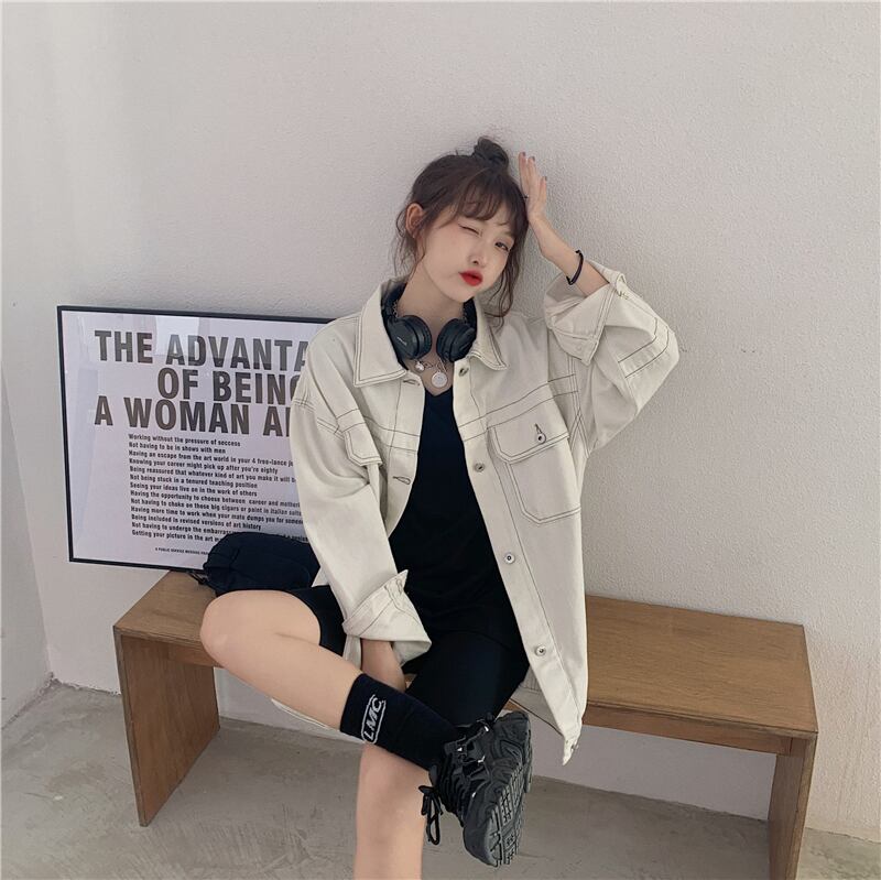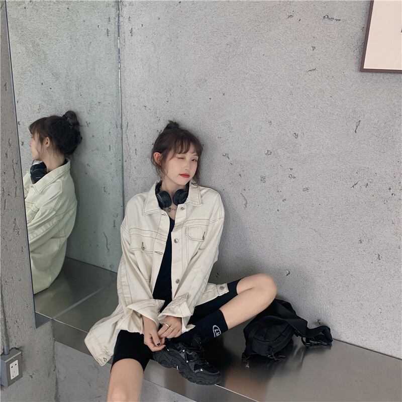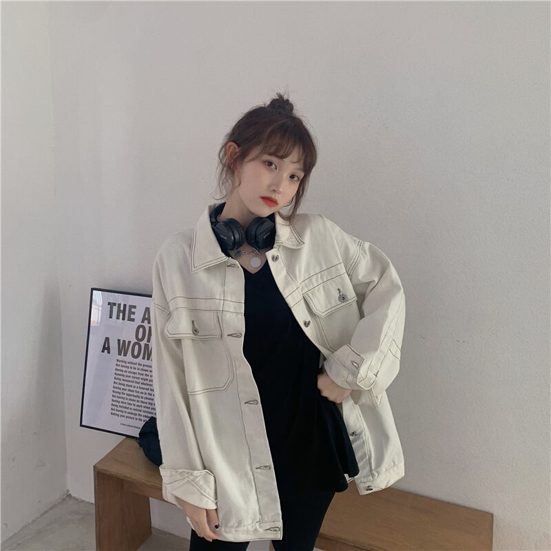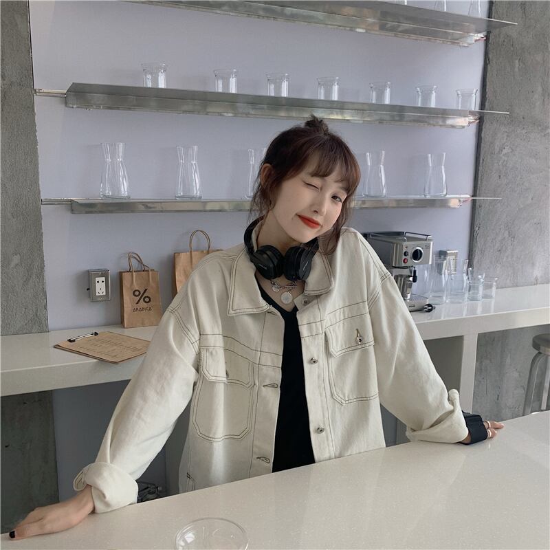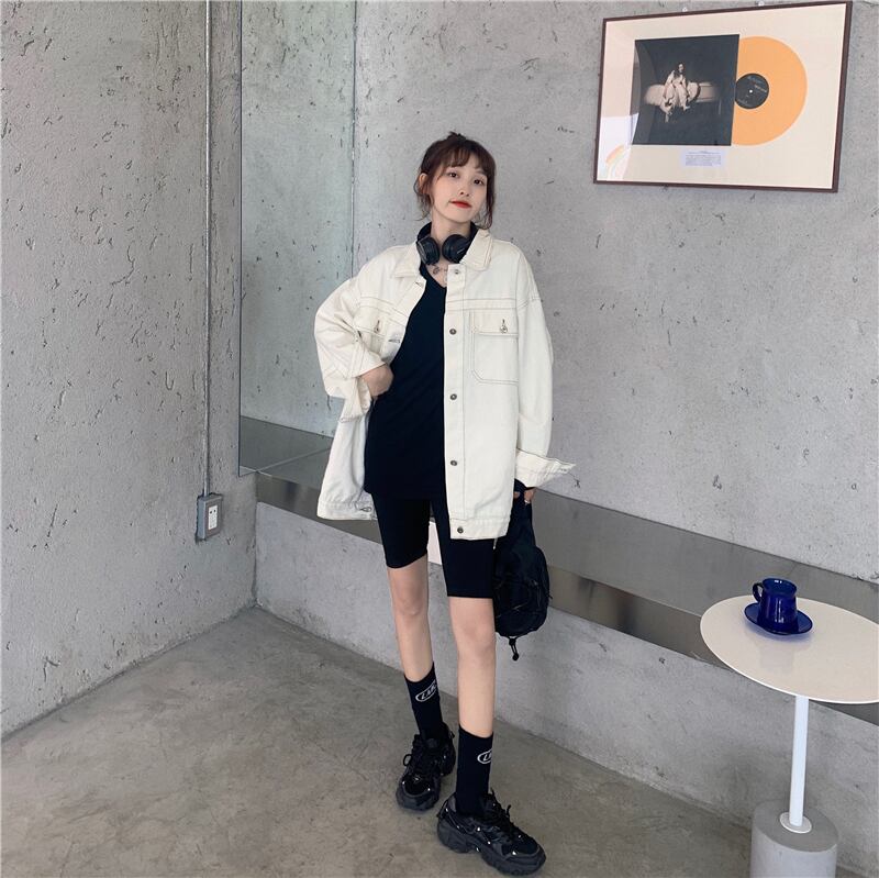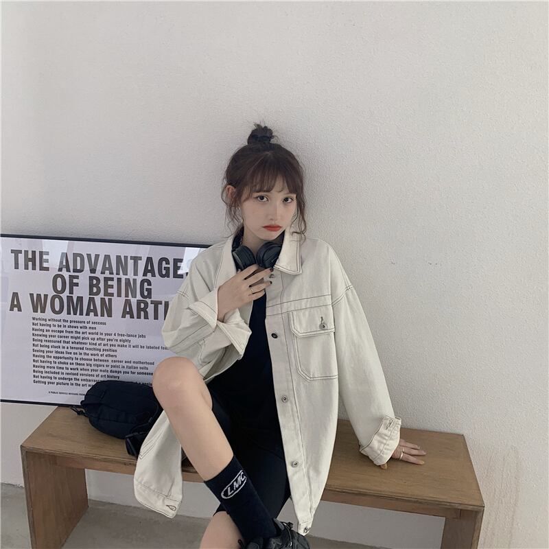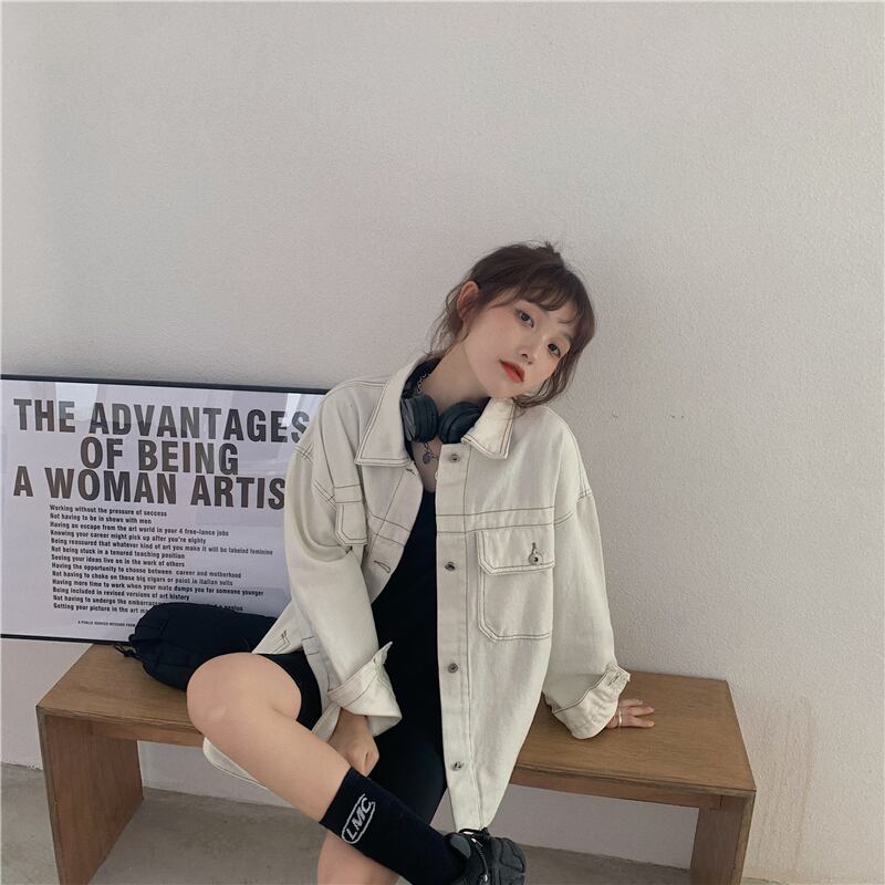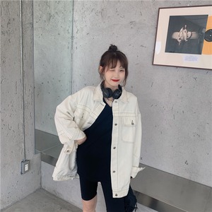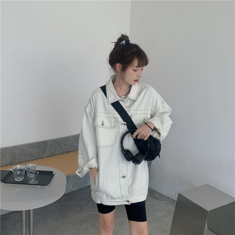 ホワイトデニムジャケットレディース2020年初秋新作カジュアルオーバーサイズルーズオープンラインデザイントップ クレセントシティ97671079160