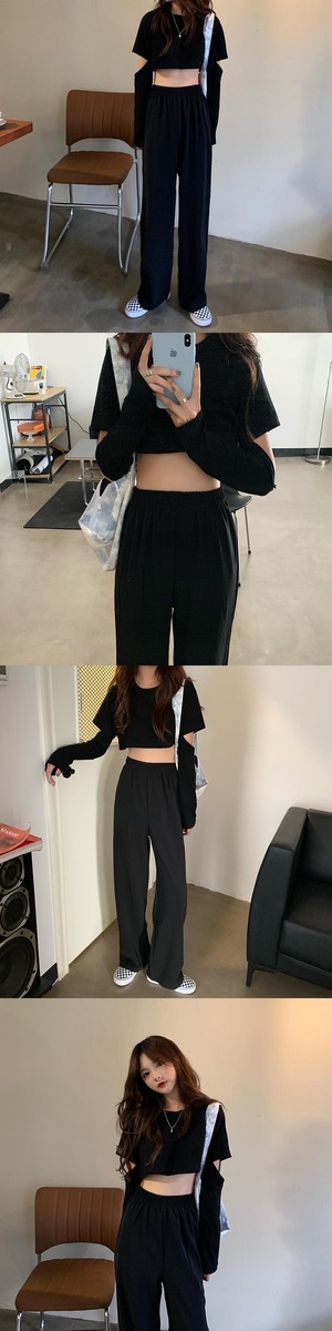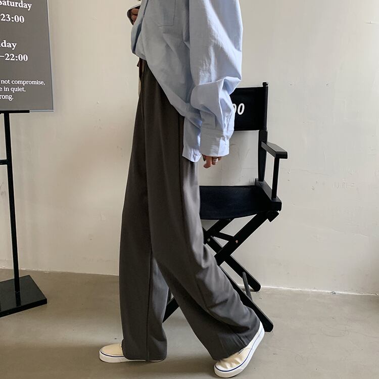 伸縮性ウエストカジュアルパンツレディース2020年秋新バージョンルーズワイルドワイドレッグパンツハイウエストドレープストレートパンツ クレセントシティ43588801447
