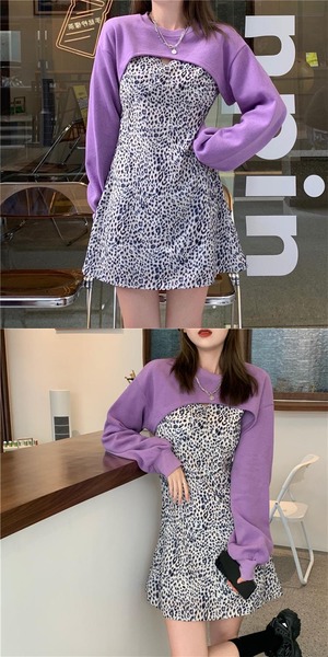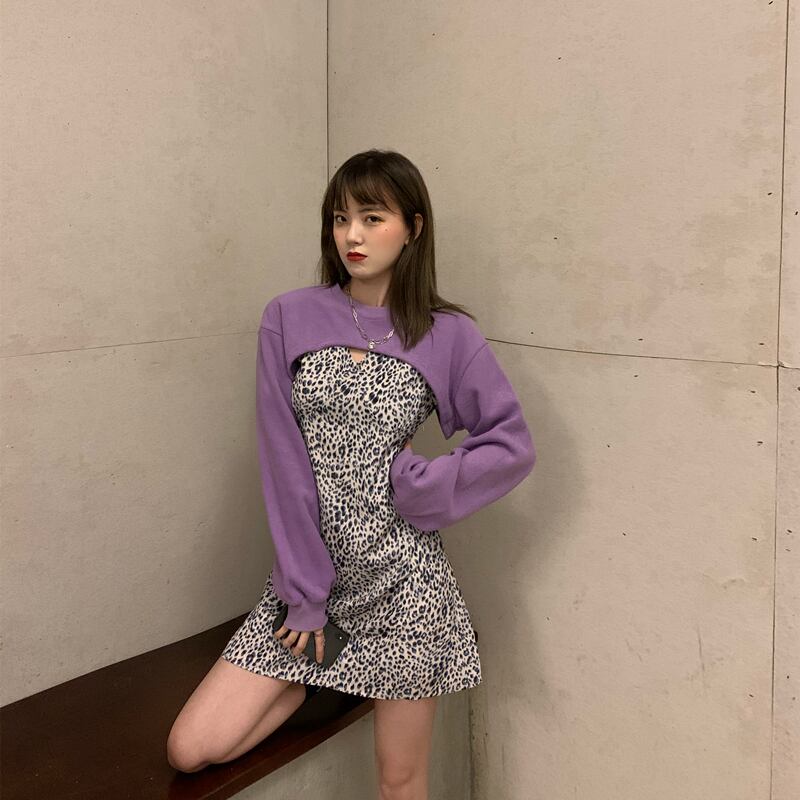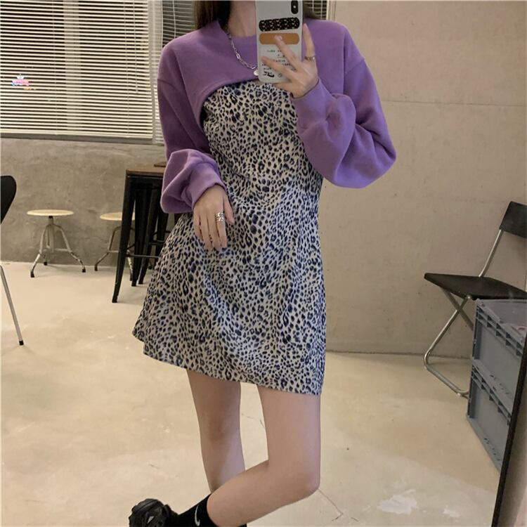 ヒョウ柄半袖ワンピース2020年秋新作スリム&シン気質ハイウエストAラインスカートイントレンド クレセントシティ55681778921