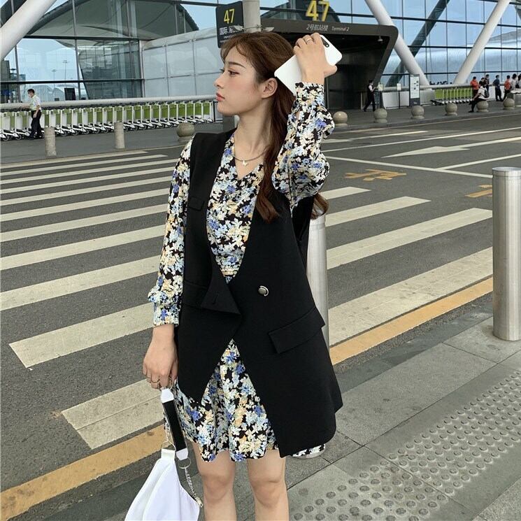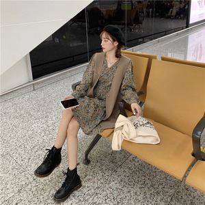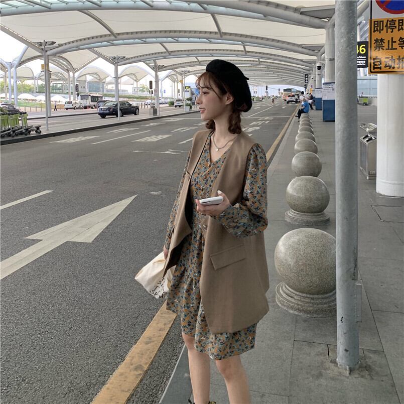 フローラルスカート女性初秋2020新しいスタイルの緩いVネックフリルドレス+ファッションスーツベスト クレセントシティ19553120319