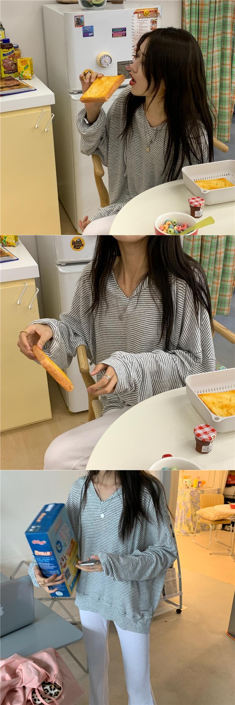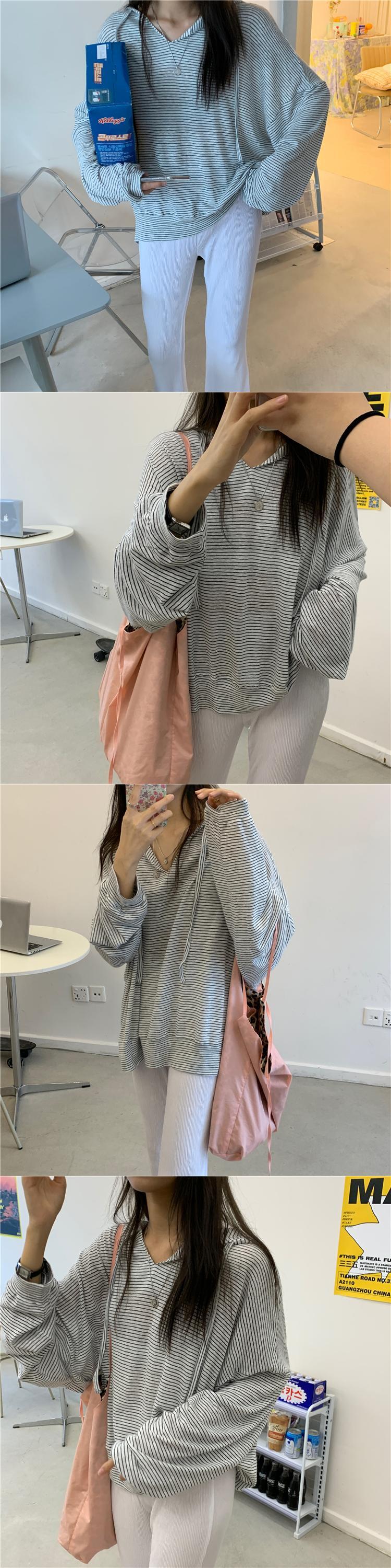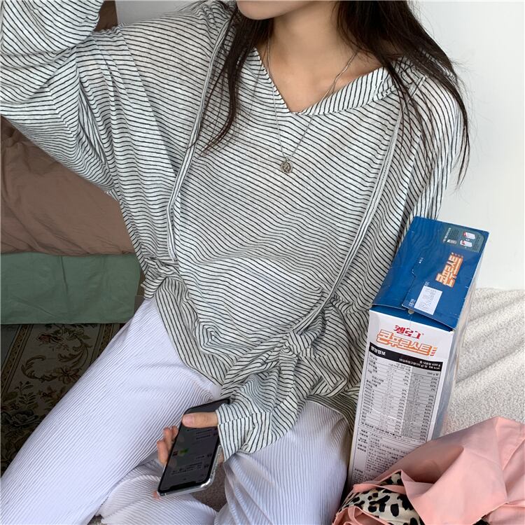 ストライプのフード付きセーター女性の2020年初秋、ドローストリングのルーズで薄いファッションの新バージョンVネック長袖トップイン クレセントシティ31499921965