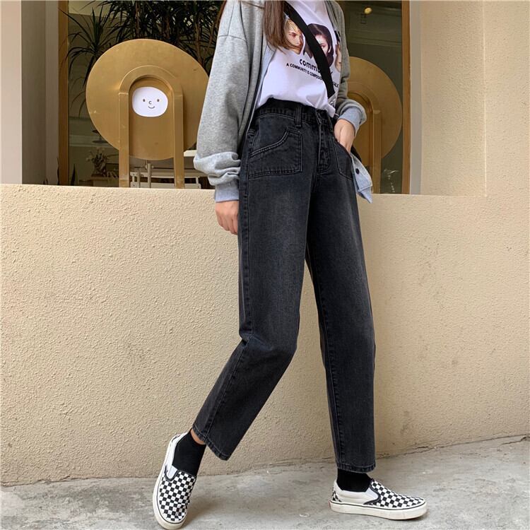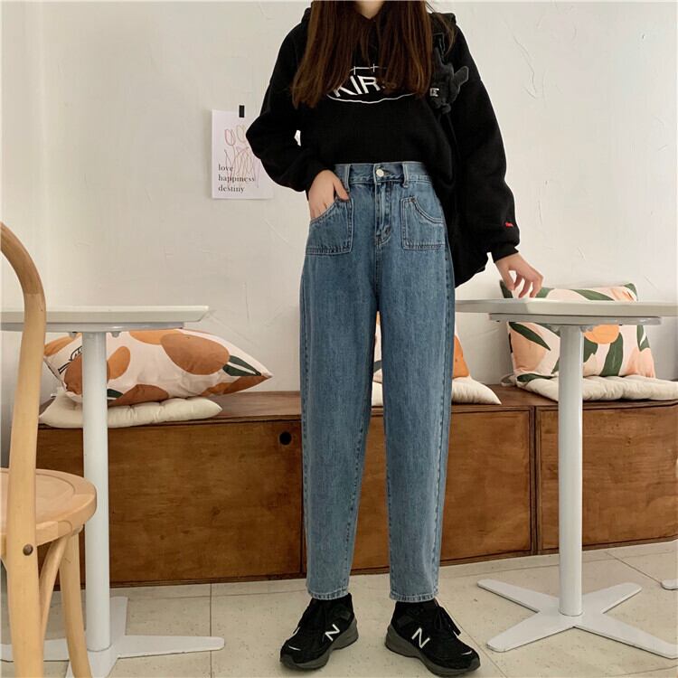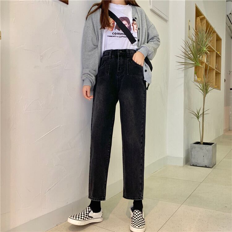 レトロなスモールトールウエストジーンズの女性の2020年初秋バージョンの新しいルーズで薄いストレートクロップドパンツ クレセントシティ93872868221