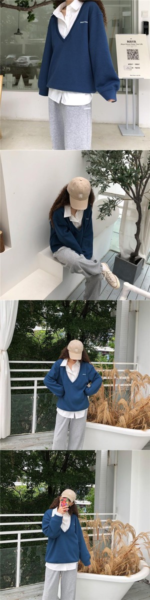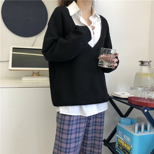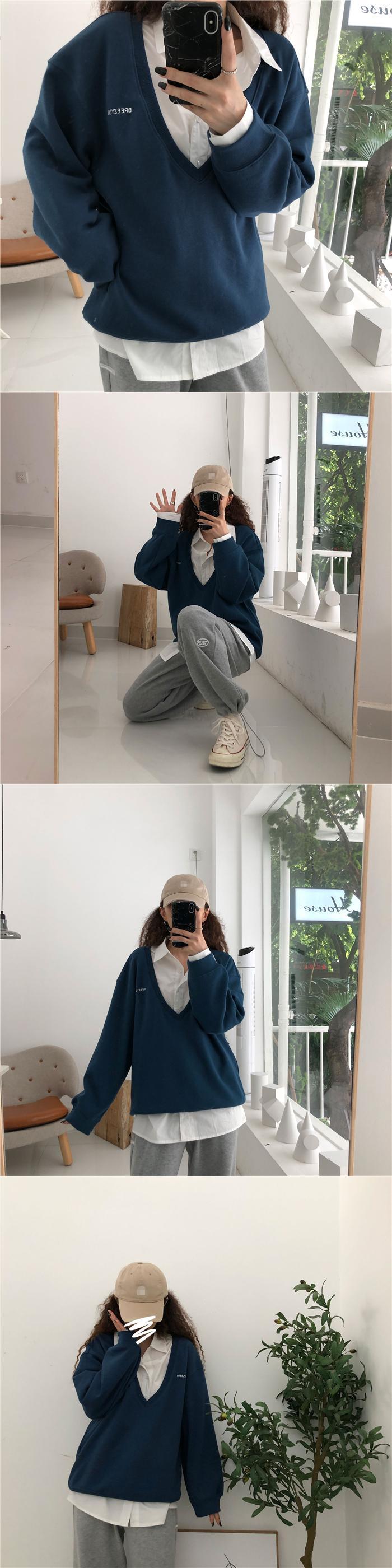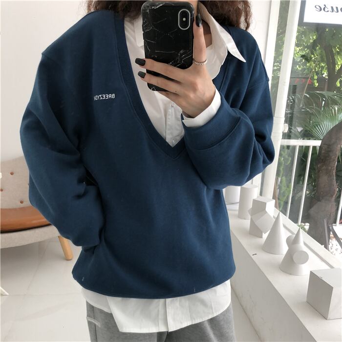ルーズなビッグVネックデザインセンスセーターレディース2020年初秋新作刺繡カジュアルプルオーバートップス クレセントシティ72994658485