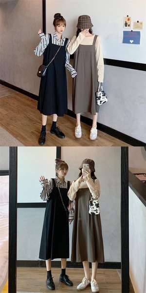 2020年秋新作サスペンダースカートレディースルーズバージョンオールマッチスリミング気質ミドル丈ワンピース クレセントシティ96135044122