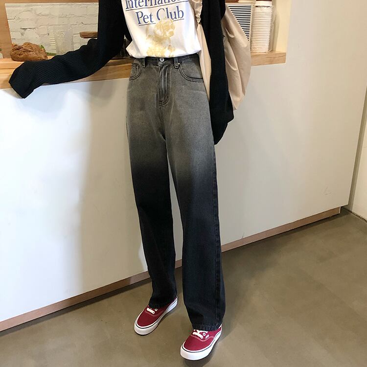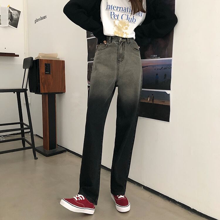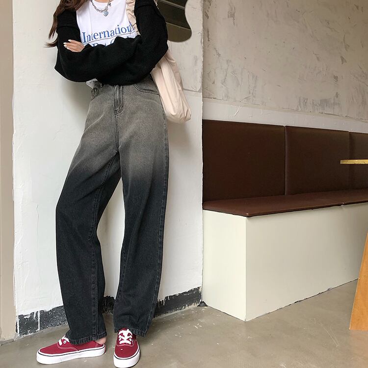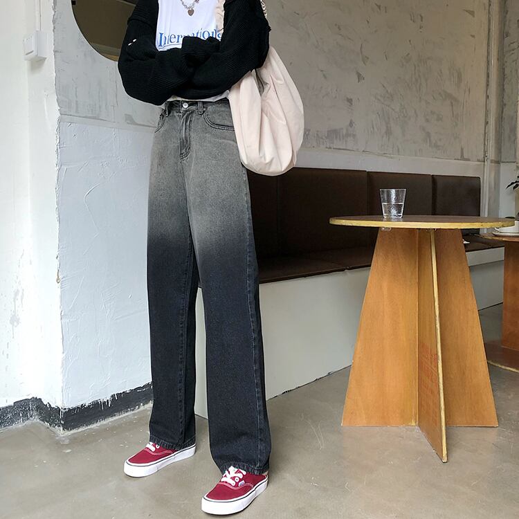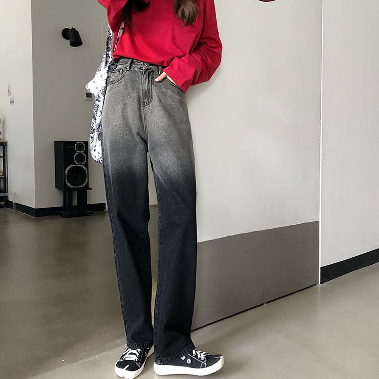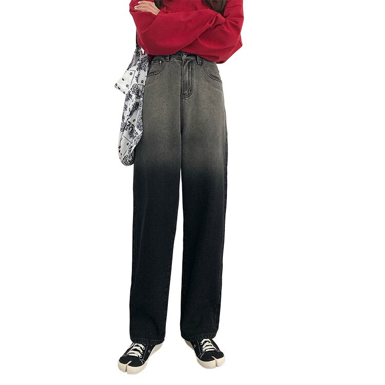 サウスイングラデーションカラートレンドストレートジーンズ女性のワイドレッグパンツ、ハイウエスト、薄いドレープ、モップパンツ クレセントシティ56268797996