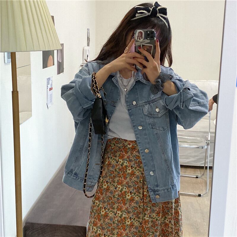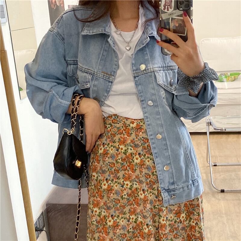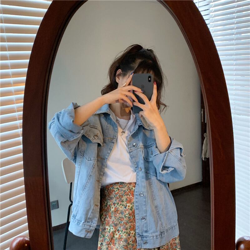 デニムジャケットレディースルーズオーバーサイズ2020年秋新作シックツーリングジャケットデニムトップス クレセントシティ15856289681