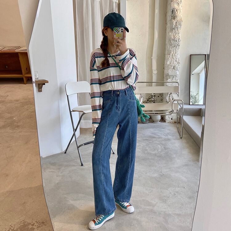 ジーンズレディース2020年初秋新作ハイウエストルーズスリムストレートドレープスモールカジュアルパンツ クレセントシティ22352939073
