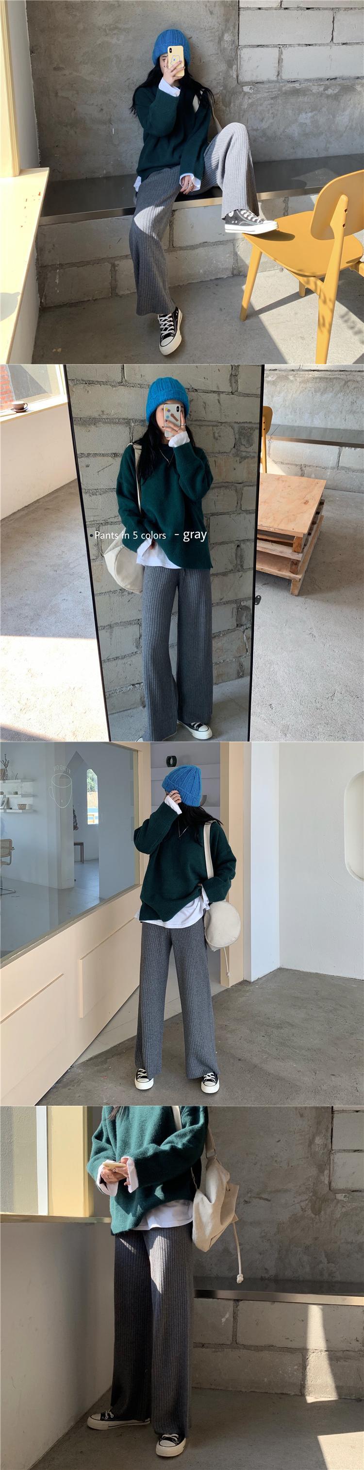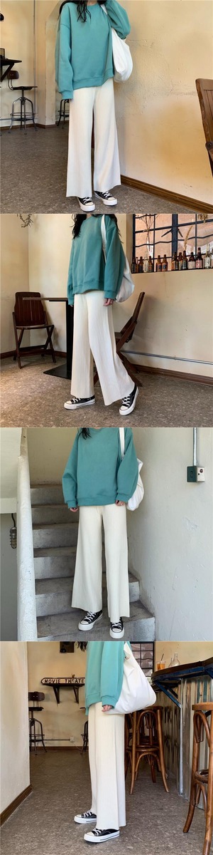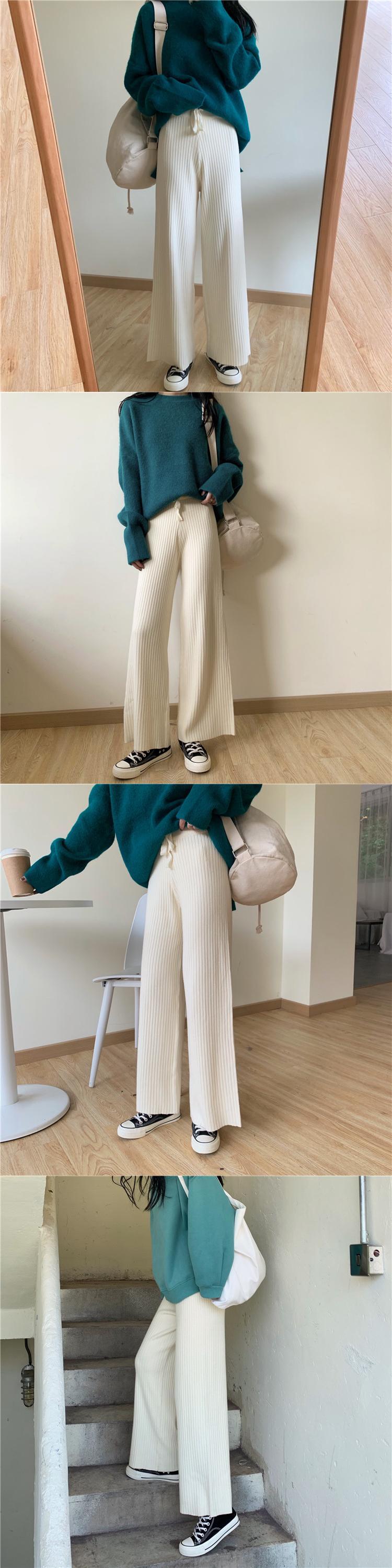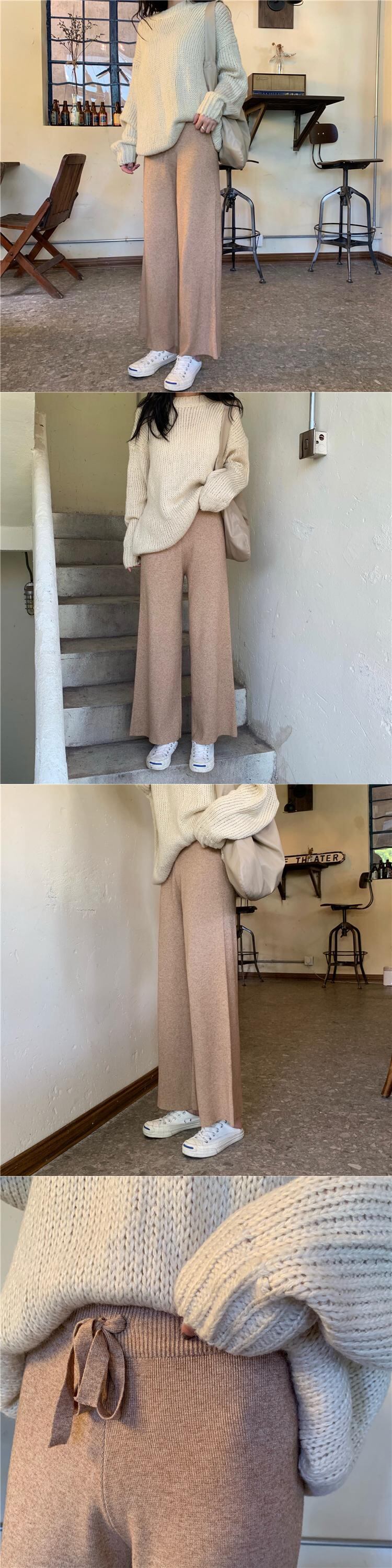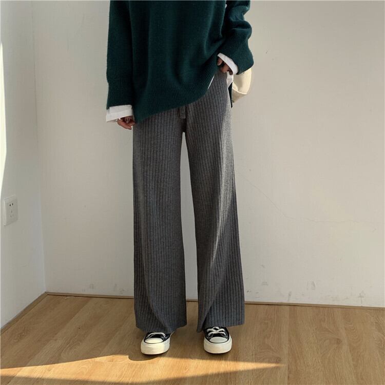 女性のカジュアルパンツ2020年初秋の新しいルーズニットワイドレッグパンツエラスティックウエストネクタイピットストライプパンツ クレセントシティ55176389724