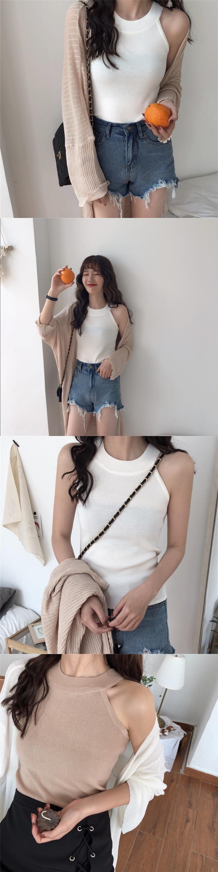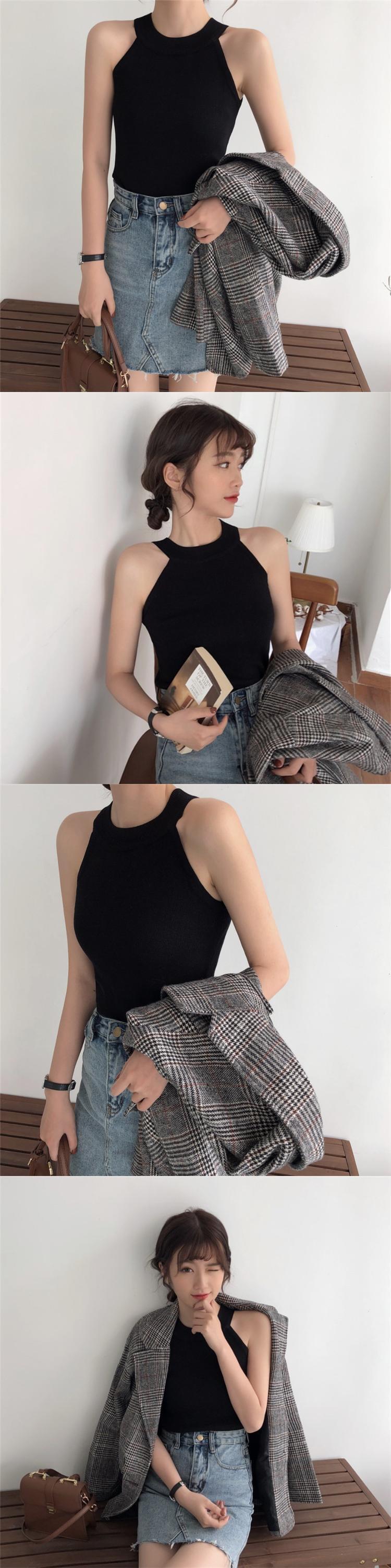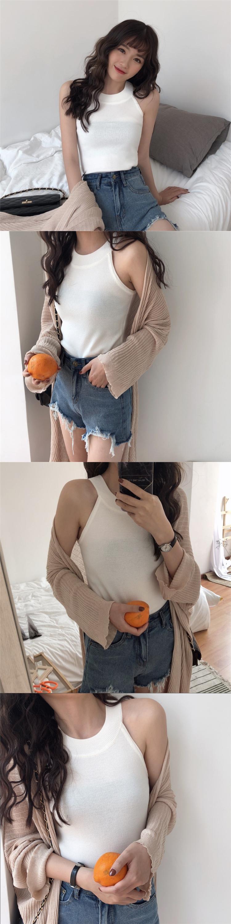 キャミソールレディースアウターウェア2020年夏新しいシックなスリムスリミングノースリーブニットホルターネックストラップレストップ クレセントシティ58655404101