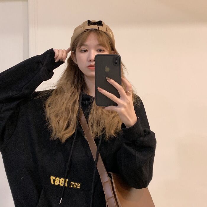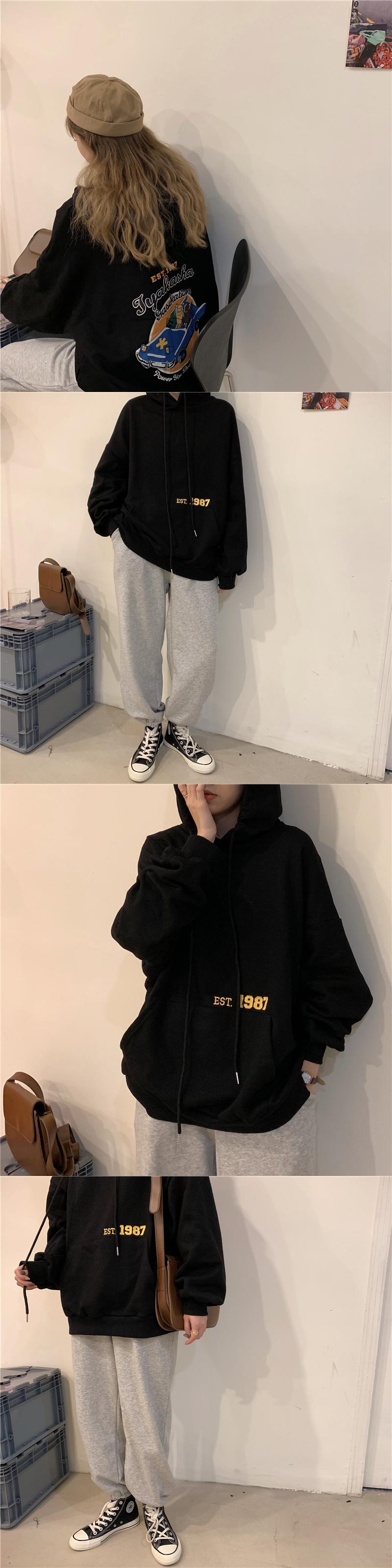 フード付きセーター女性初秋カジュアルレタープリント2020新入生ルーズミドル丈プルオーバートップ クレセントシティ35569596037