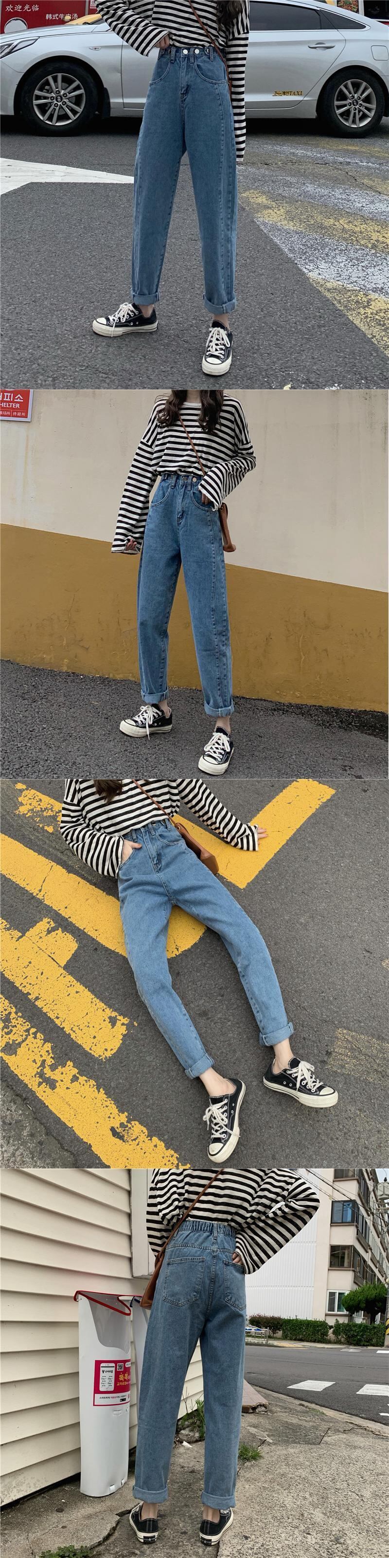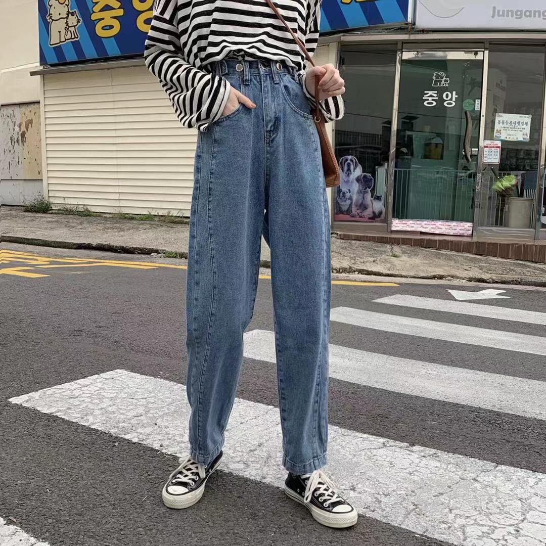 キム・ヒョナスタイルジーンズレディース2020年初秋新作ハイウエストスリムストレートカジュアルワイドレッグ学生9点パンツ クレセントシティ56397582838