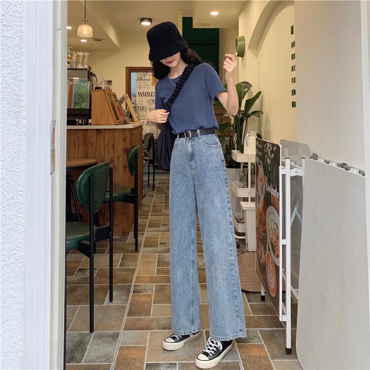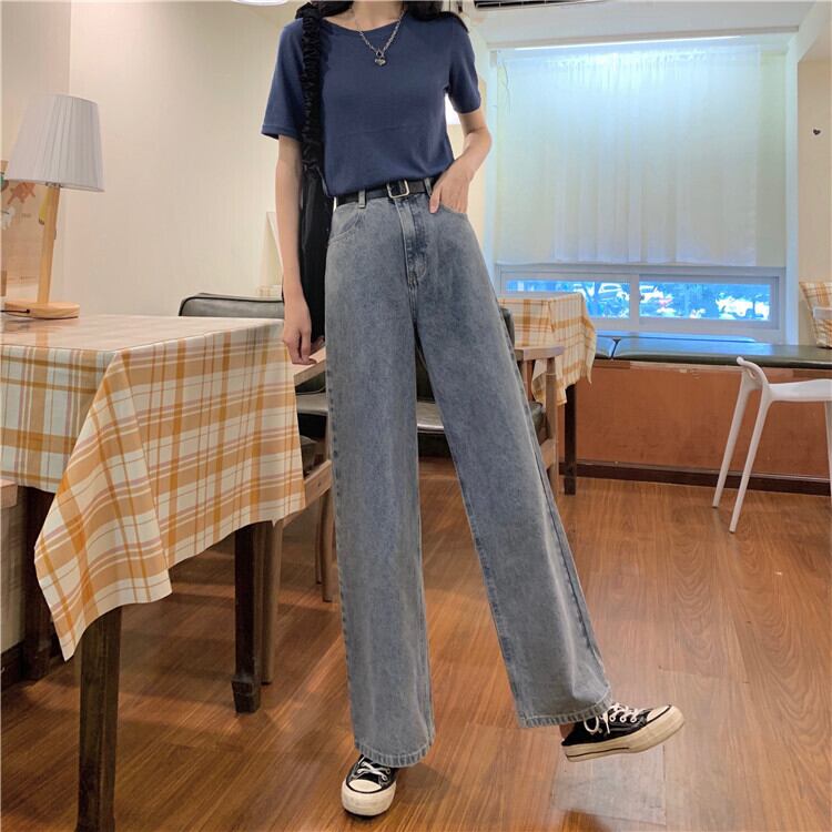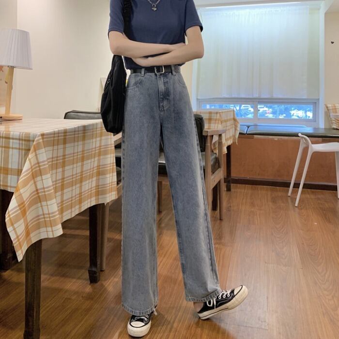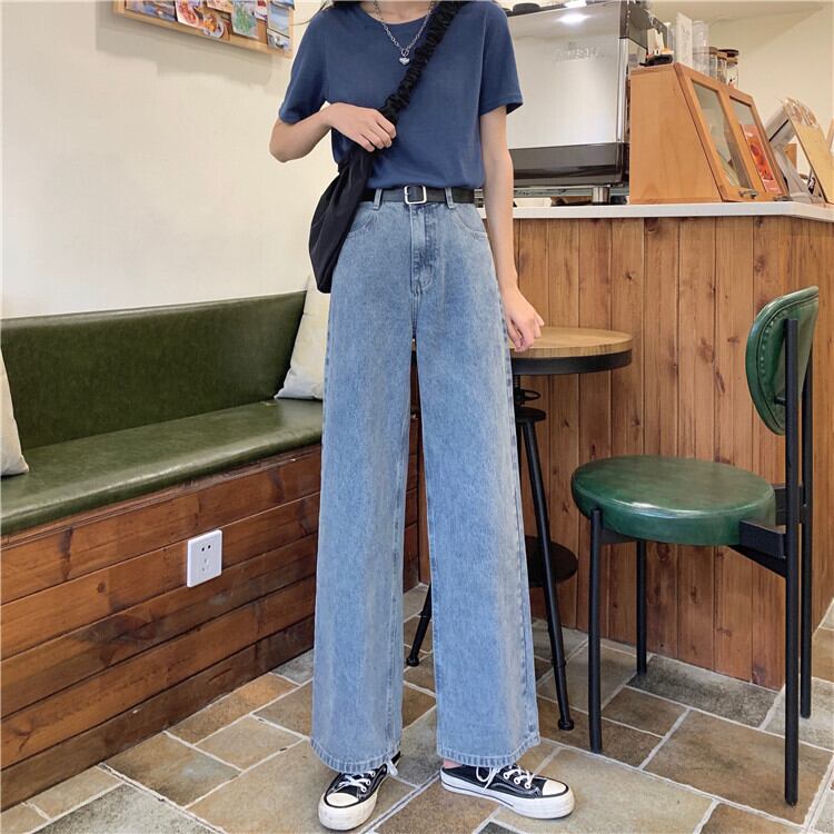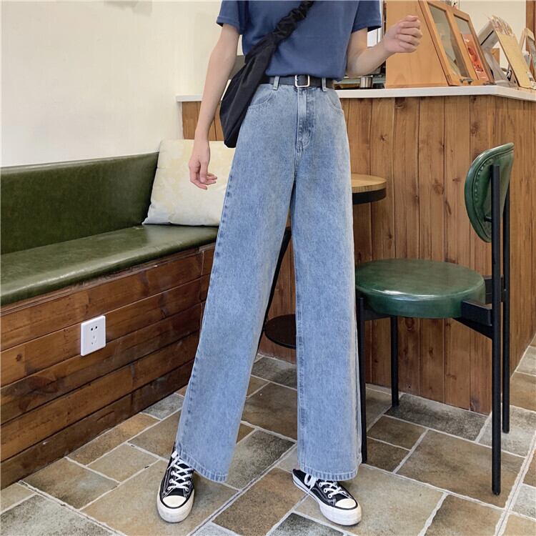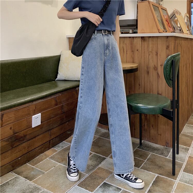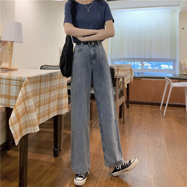 ルーズワイドレッグパンツレディース2020年秋新バージョンは薄く、オールマッチストレートハイウエストジーンズ学生パンツトレンド クレセントシティ53772542374