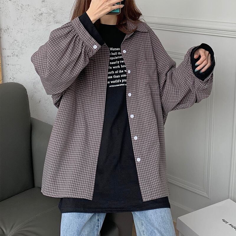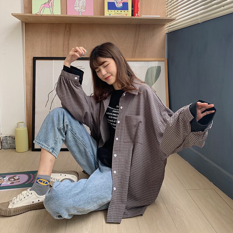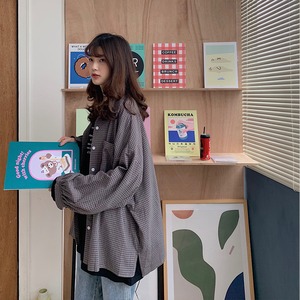 クレセントシティチェック柄シャツ2020年秋冬レトロ香港フレーバールーズオールマッチウエスタン長袖シャツジャケット クレセントシティ52187860671