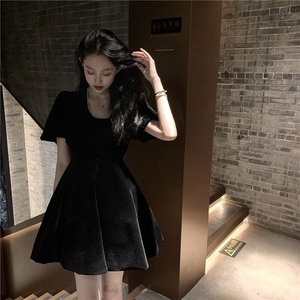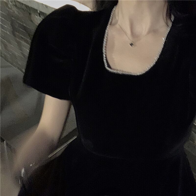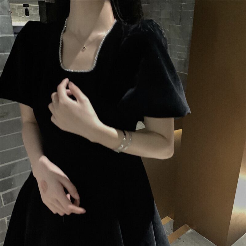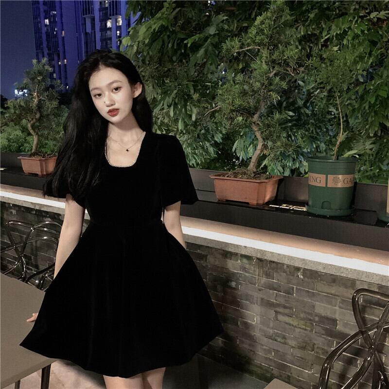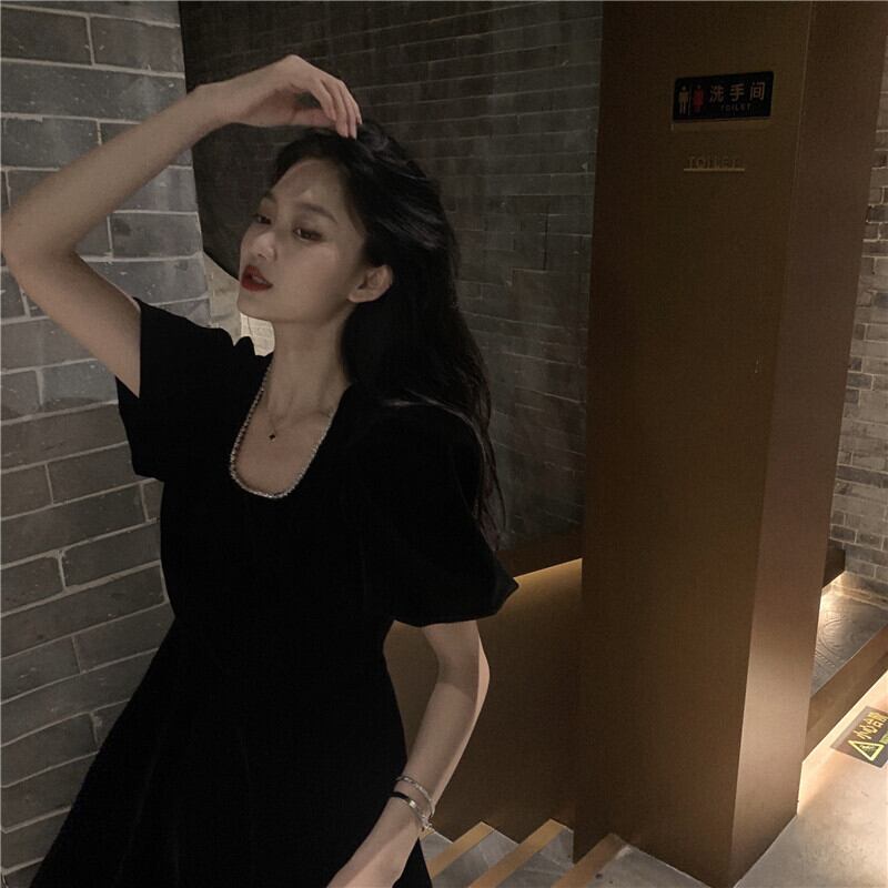2020年初秋新しいフレンチレトロパフスリーブドレスレディースウエストスリミング気質リトルブラックドレスAラインスカート クレセントシティ51577397966