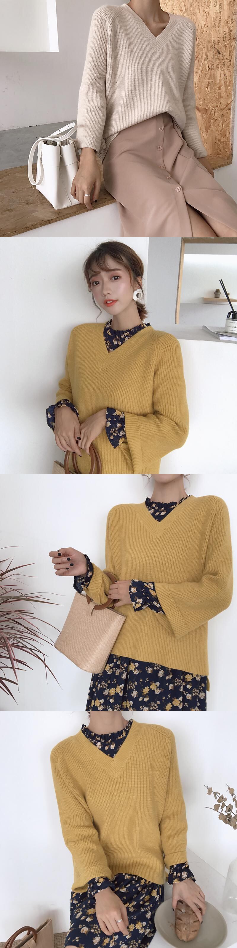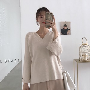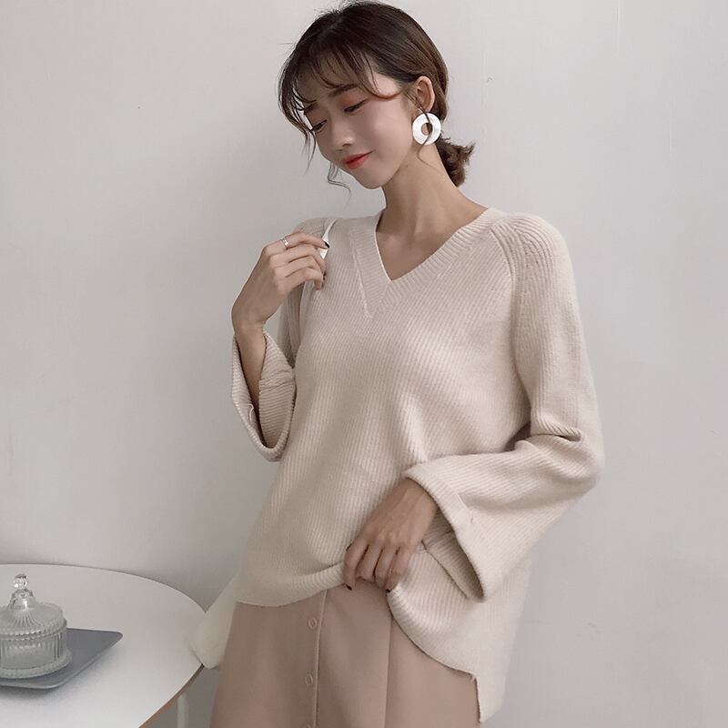 長袖プルオーバーセーターレディースアウター2020年秋新作スタイルカレッジスタイルルーズフレアスリーブVネックセーター クレセントシティ18338443047