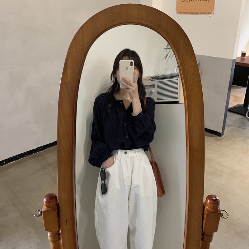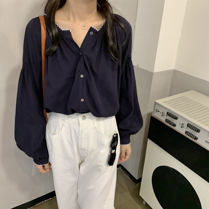 シャツ女性デザインセンスニッチシック2020年初秋新作ルーズフリル気質パフスリーブトップ クレセントシティ18542002704