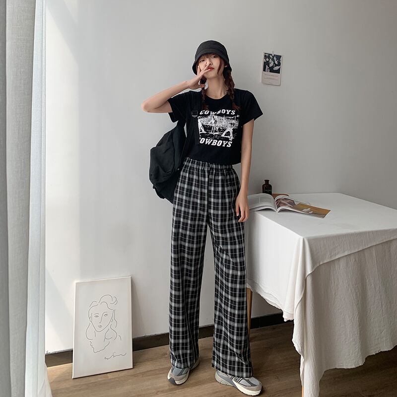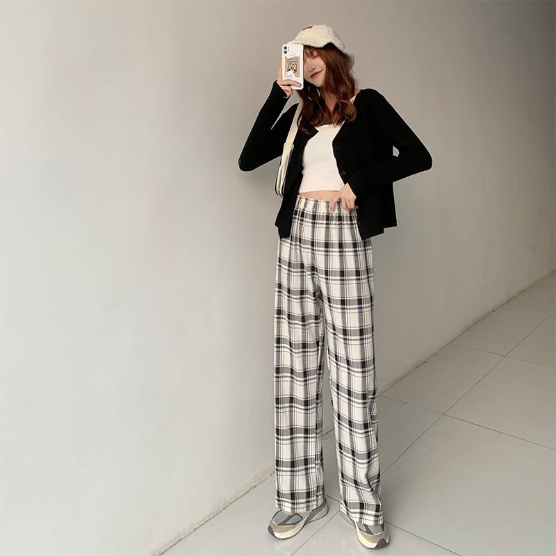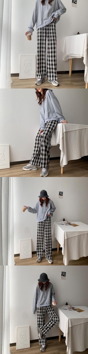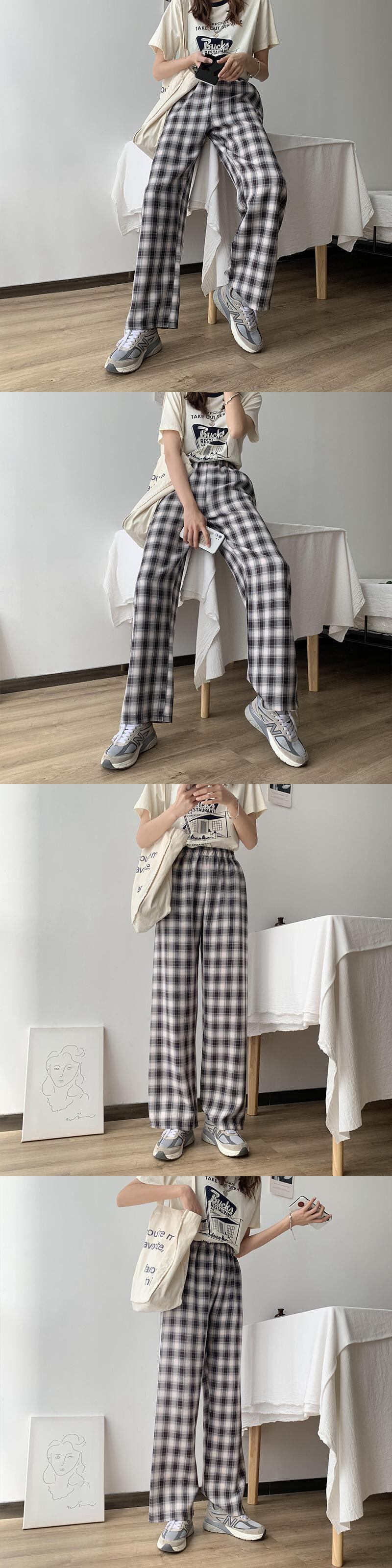 クレセントシティチェック柄パンツ2020年秋スタイルルーズストレートパンツレディースシンウエストワイドレッグパンツ クレセントシティ39205995362