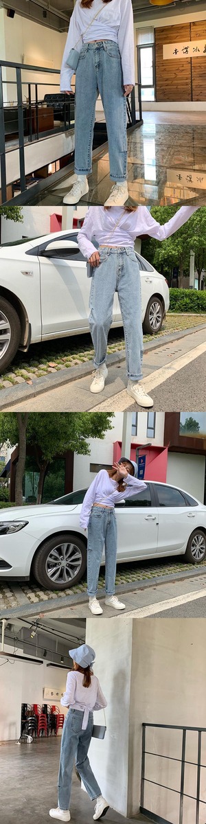 ブルージーンズレディース2020年初秋ハイウエストスリムルーズストレートワイドレッグパンツロールエッジリップドパンツの新バージョン クレセントシティ37945483660