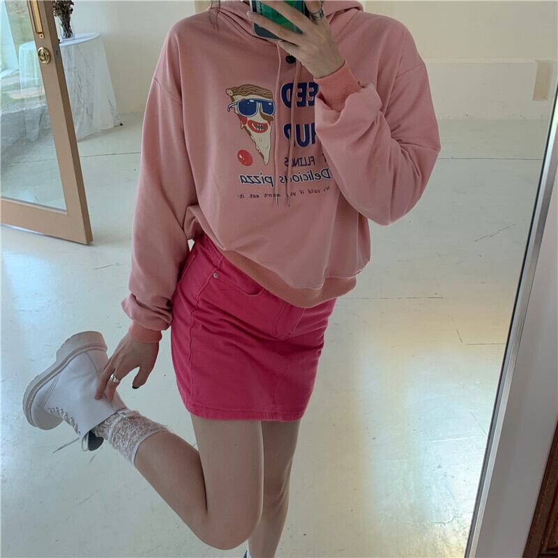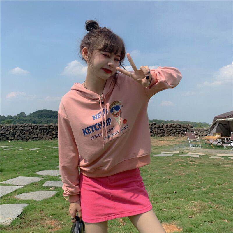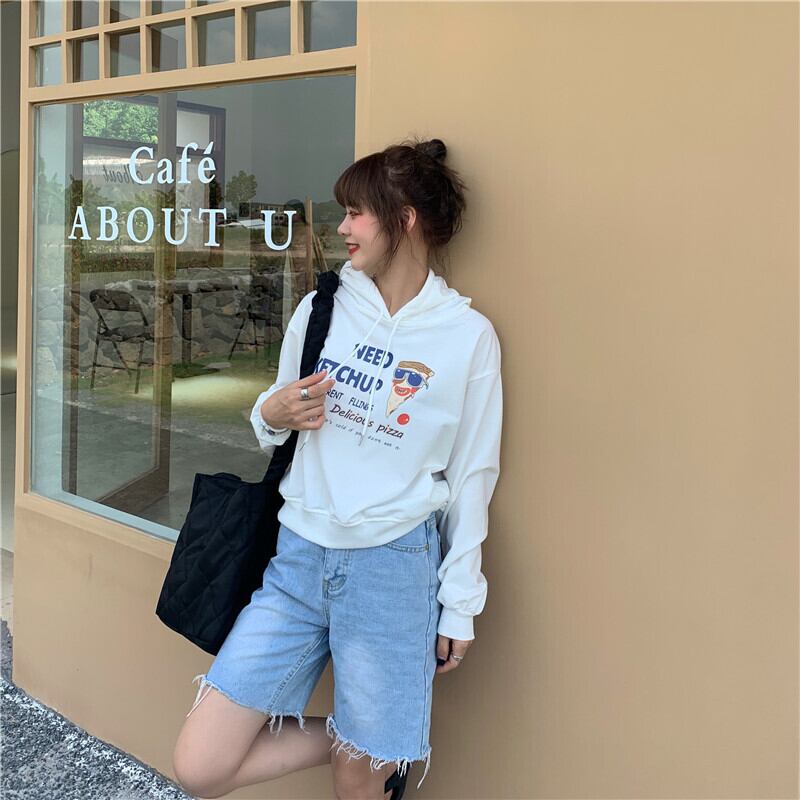 フード付きセーター女性2020年秋冬新バージョンルーズワイルドレタープリントカジュアルショートトップインタイド クレセントシティ54685276535