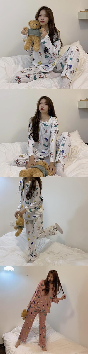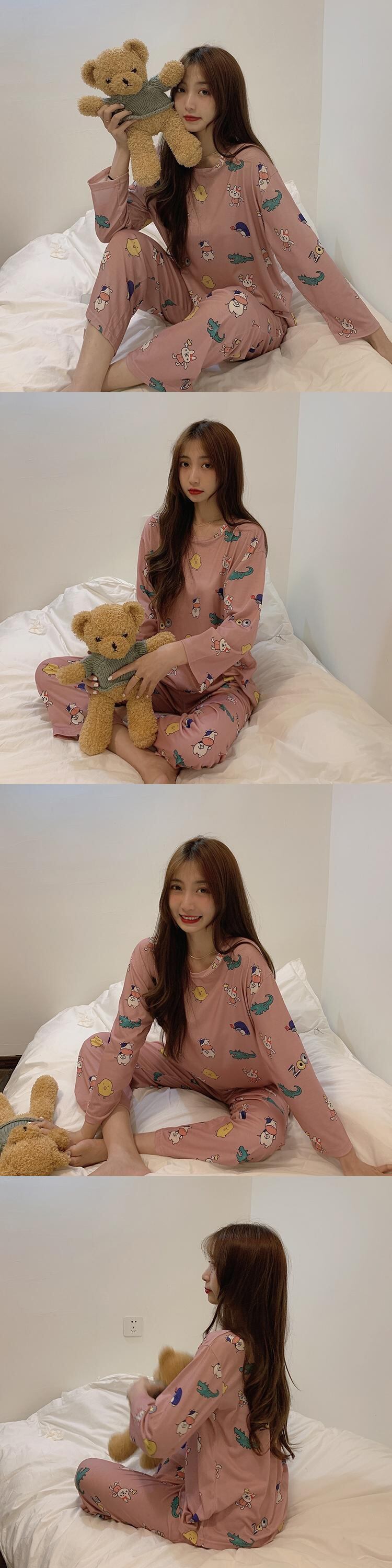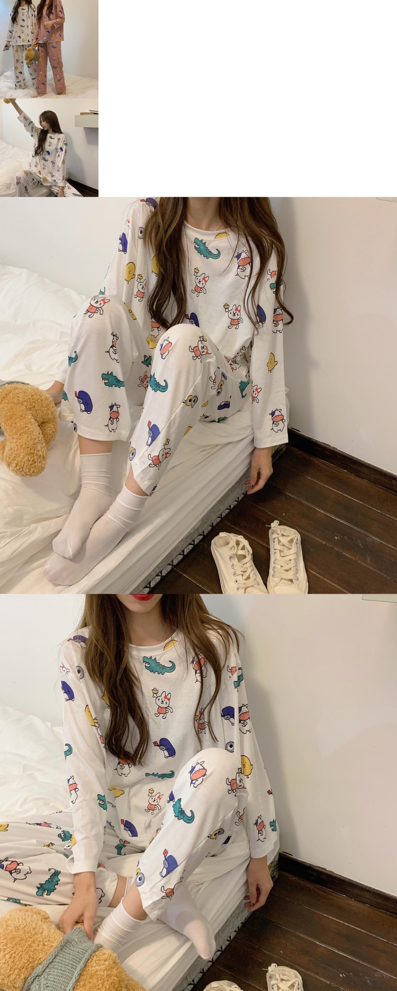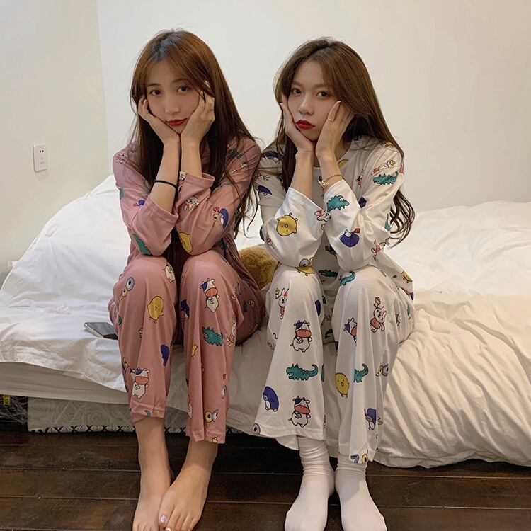 長袖パジャマ女性の2020年初秋新バージョンルーズかわいい漫画楽しい印刷ルーズホームサービススーツ クレセントシティ51033308821