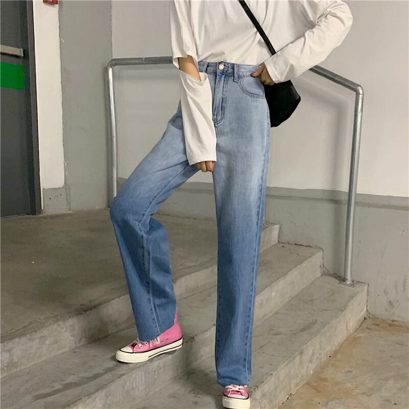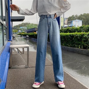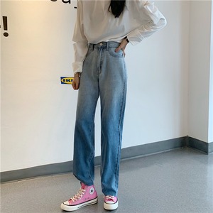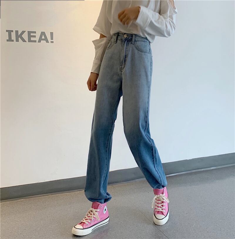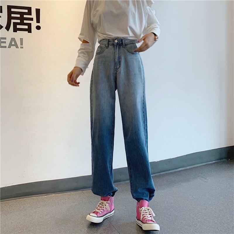 グラデーションブルージーンズレディース2020年初秋ニュースタイルデザインセンスハイウエストルーズストレート生エッジモップパンツトレンド クレセントシティ98919440061