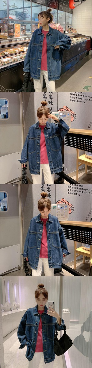 長袖デニムジャケットレディース2020年初秋新作レトロルーズミドル丈学生カジュアルポケットトップ クレセントシティ35595418240