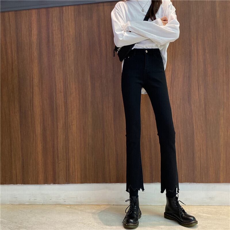 ブラックローエッジジーンズレディース2020年秋新バージョンスリムスリミングフレアパンツハイウエストクロップドパンツ クレセントシティ46772740329