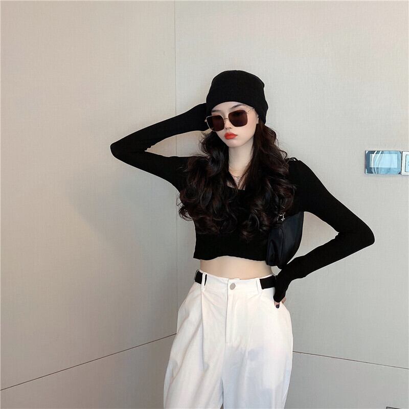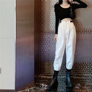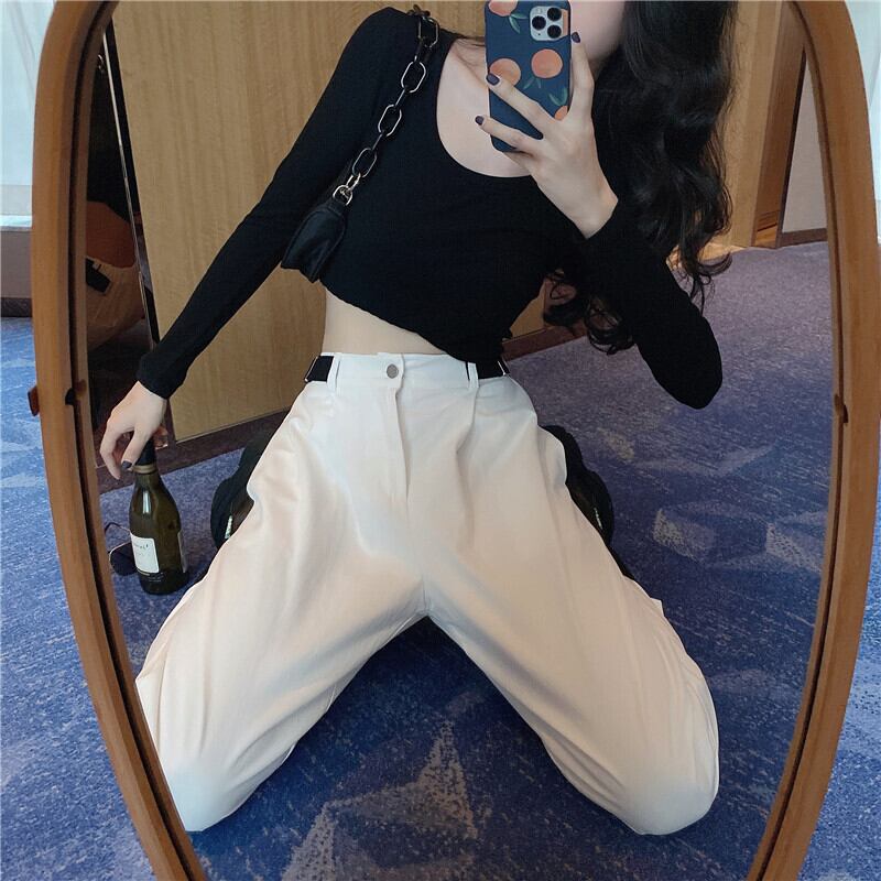 スーツレディース2020新秋スリムbmブラックTシャツ+ハイウエストルーズワイドレッグホワイトカジュアルパンツ クレセントシティ99668523776