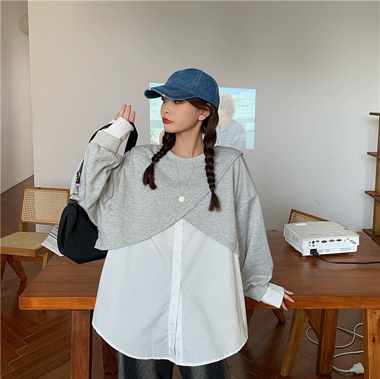 セーターの女性の2020年初秋新しいデザインセンスの学生はカジュアルな不規則なツーピースのスプライシングトップを緩めます クレセントシティ5552928497