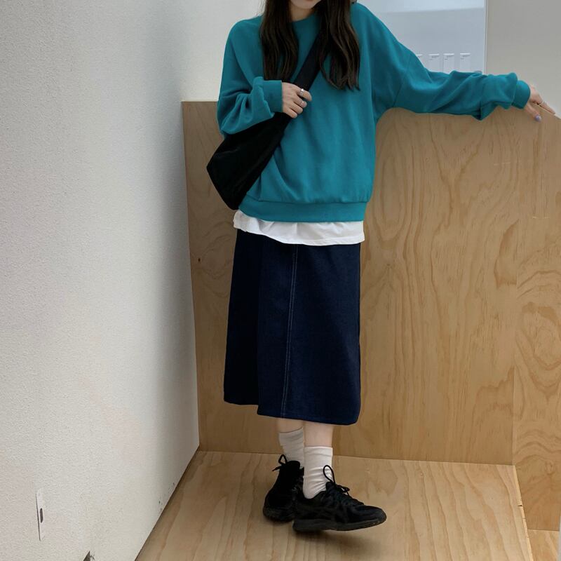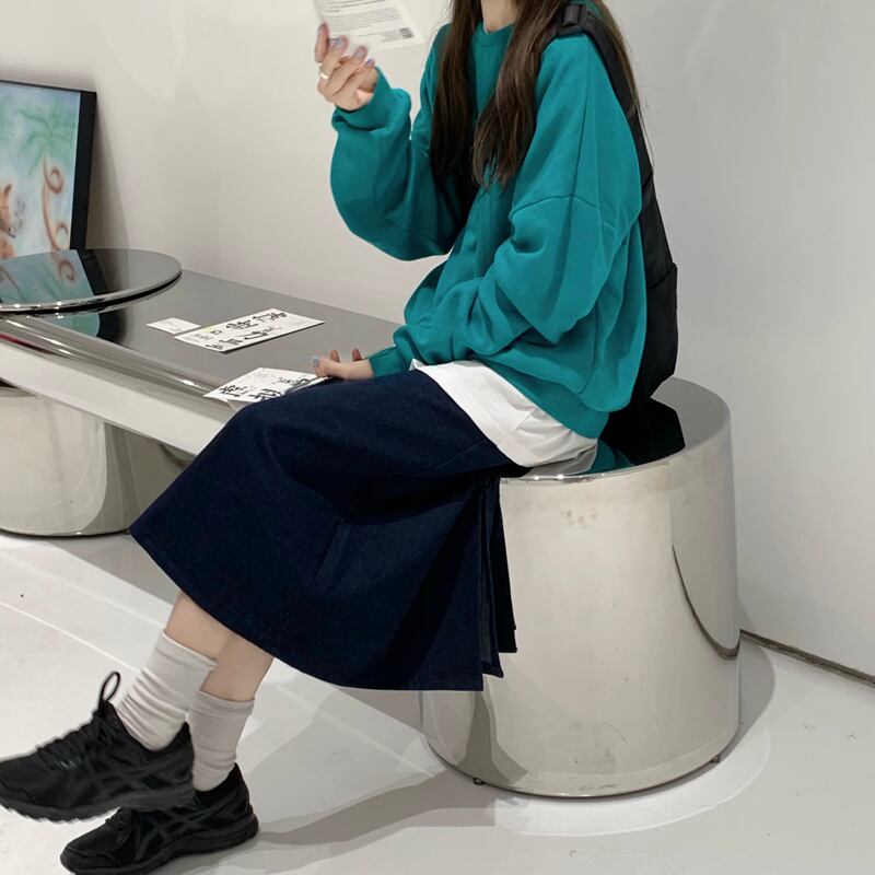 デニムスカート女性2020年秋新作シック多用途スプリット気質ハイウエストAラインミドル丈スカート クレセントシティ18131733384