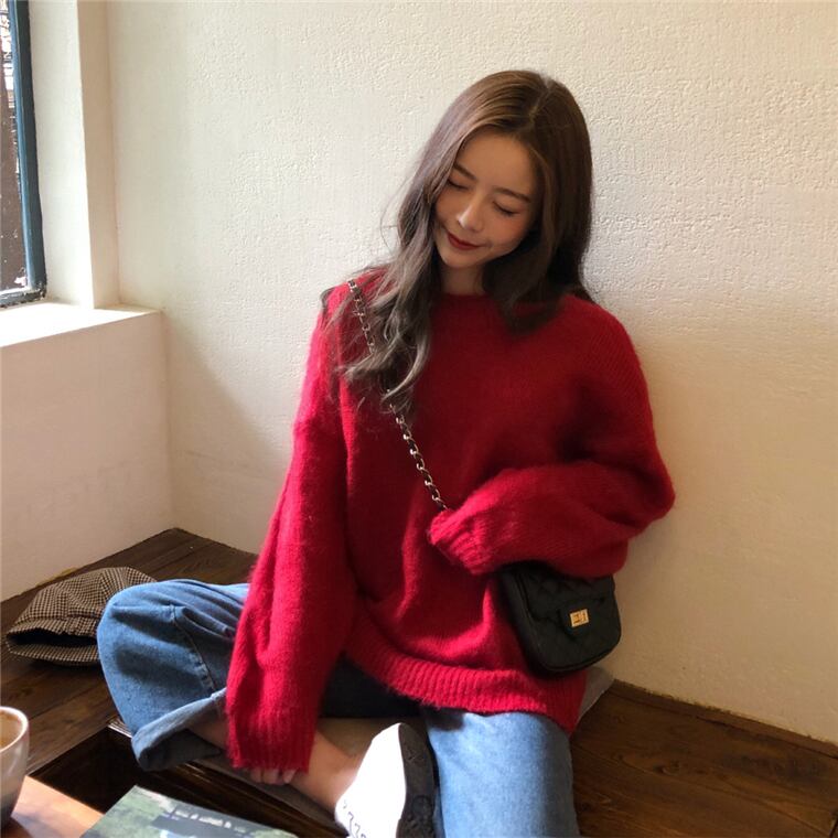 モヘアセーターレディース2020年初秋ルーズミドル丈優しいキャンディーカラーフレンズプルオーバートップの新バージョン クレセントシティ99619860312