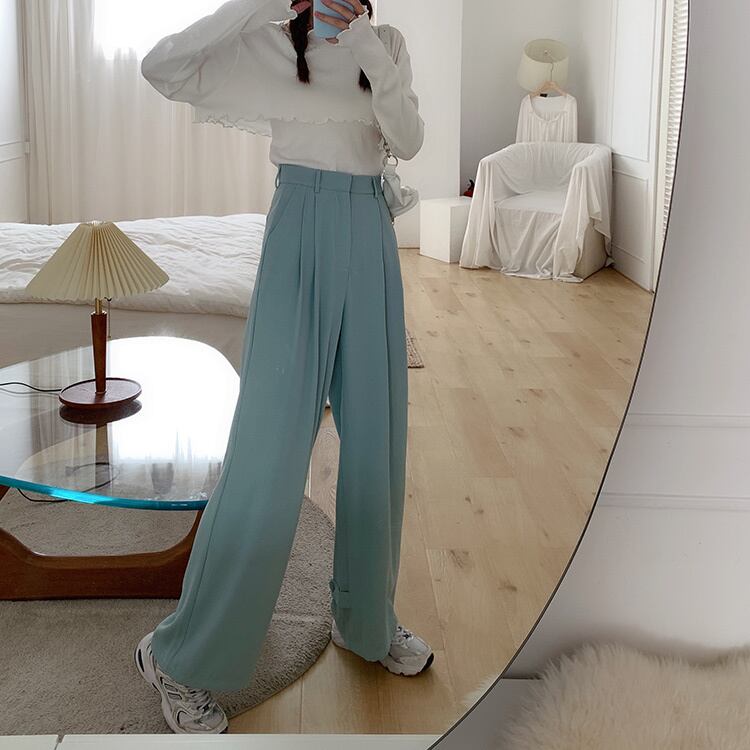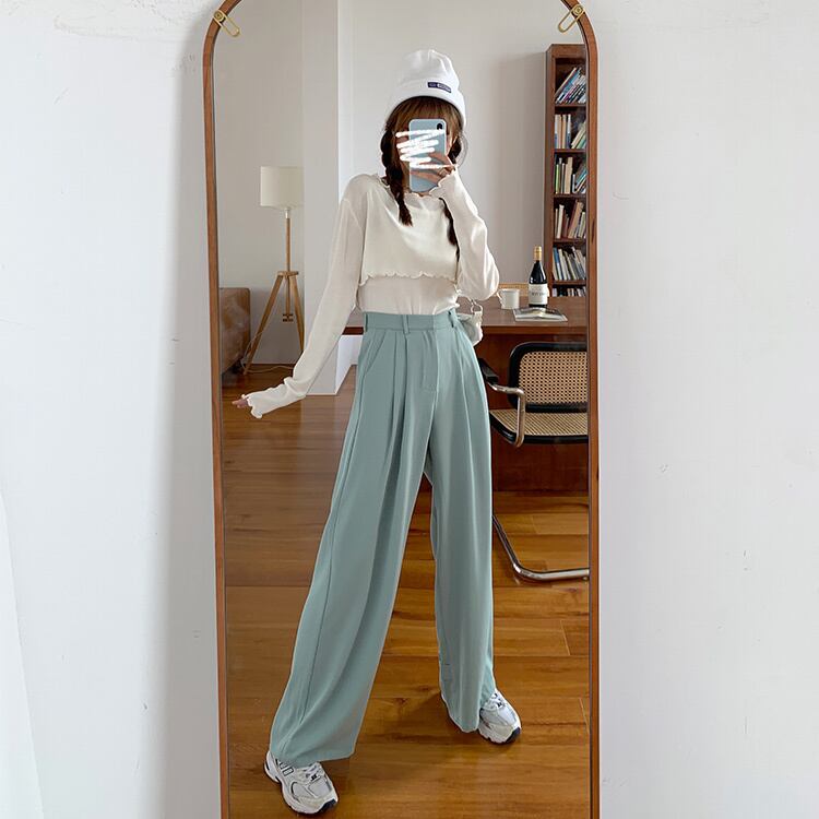 2020年秋新しいスタイルのルーズワイドレッグスーツパンツ女性は薄くて用途の広いハイウエストドレープストレートモップパンツ クレセントシティ93293493116
